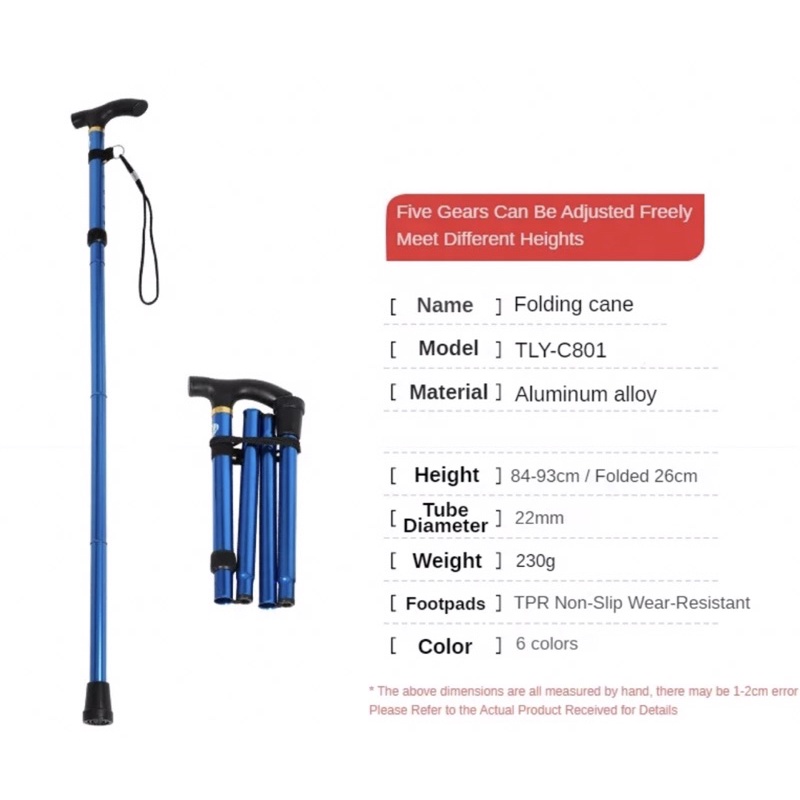 Adjustable Anti-Slip Folding Cane - Lightweight, Sturdy Walking Stick for Hiking, Mobility Aid for The Elderly, Height