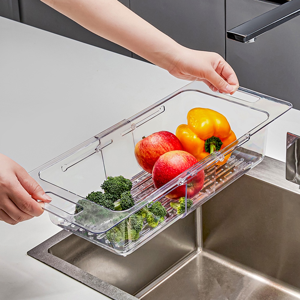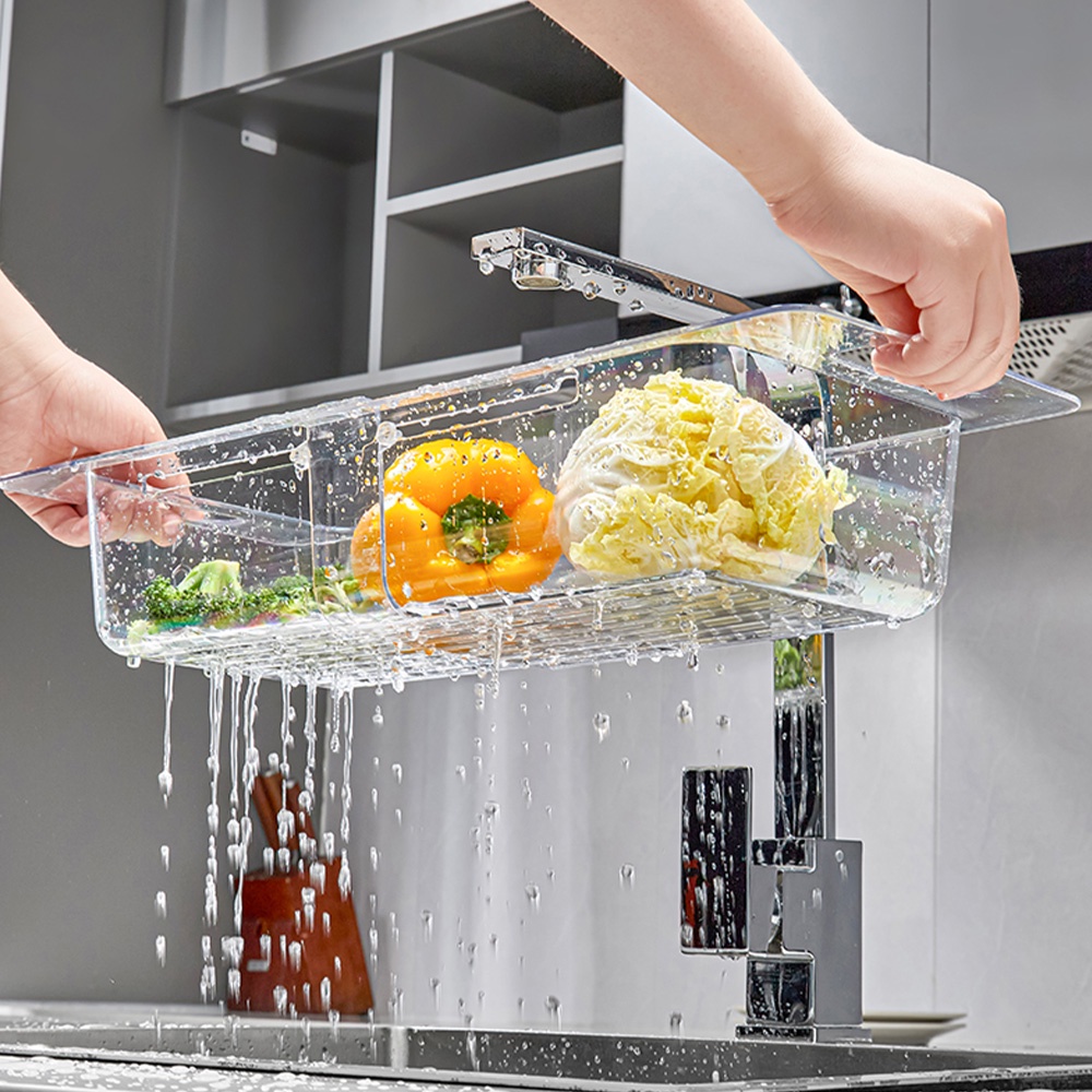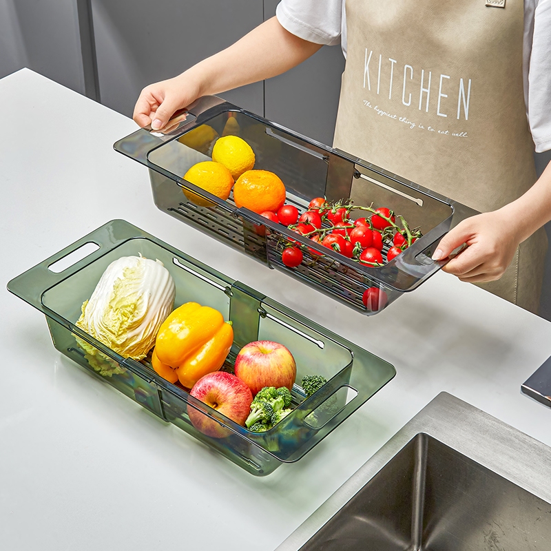 Adjustable Drain Basket, Kitchen Sink Basket Organizer, Multifunctional Sink Vegetable Washing Collapsible