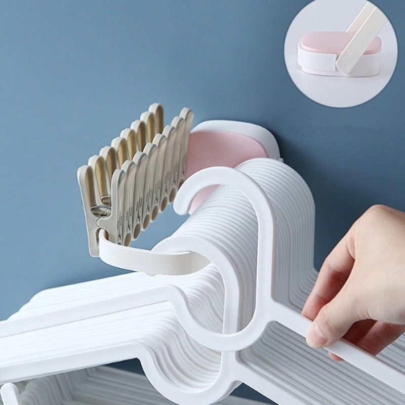 Adjustable Hanger Organizer, Hanger Storage Rack Clothes Storage,Punch-free Adjustable Wall-mounted Plastic Hanger Organizer Clothes Storage Bathroom Accessories