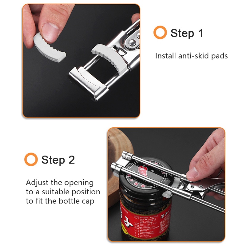 Adjustable Jar Opener Stainless Steel Jam Bottle Cap Open Tool Anti-skid Save Effort Lid Opener Restaurant Bar Kitchen Supplies