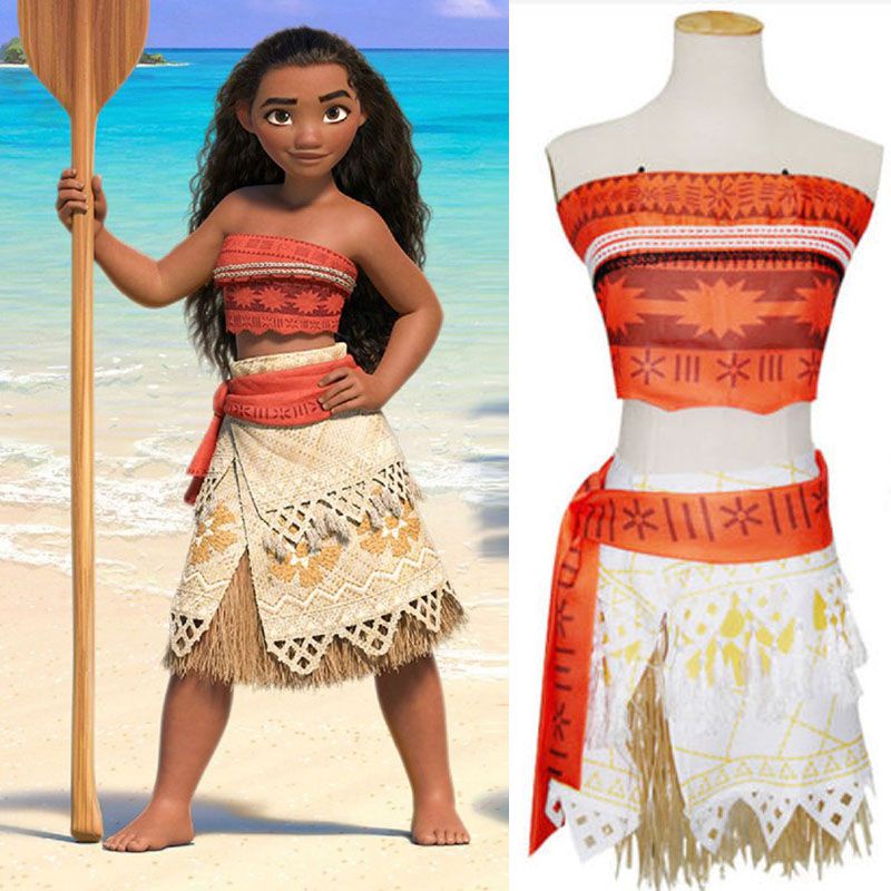 Adult Kids Moana Princess Costume Hawaiian Style Fancy Dress Children Cosplay Hawaiian Set Best Gift for Girls