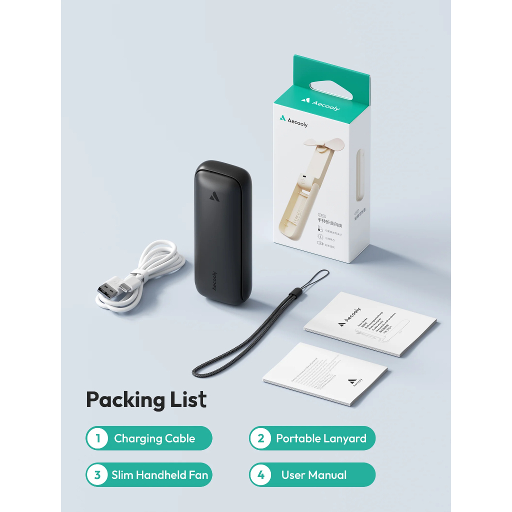 Aecooly Mini Thin Slim Portable Handheld Fan , USB Rechargeable , Battery Powered - Small Foldable Pocket Fan for Travel