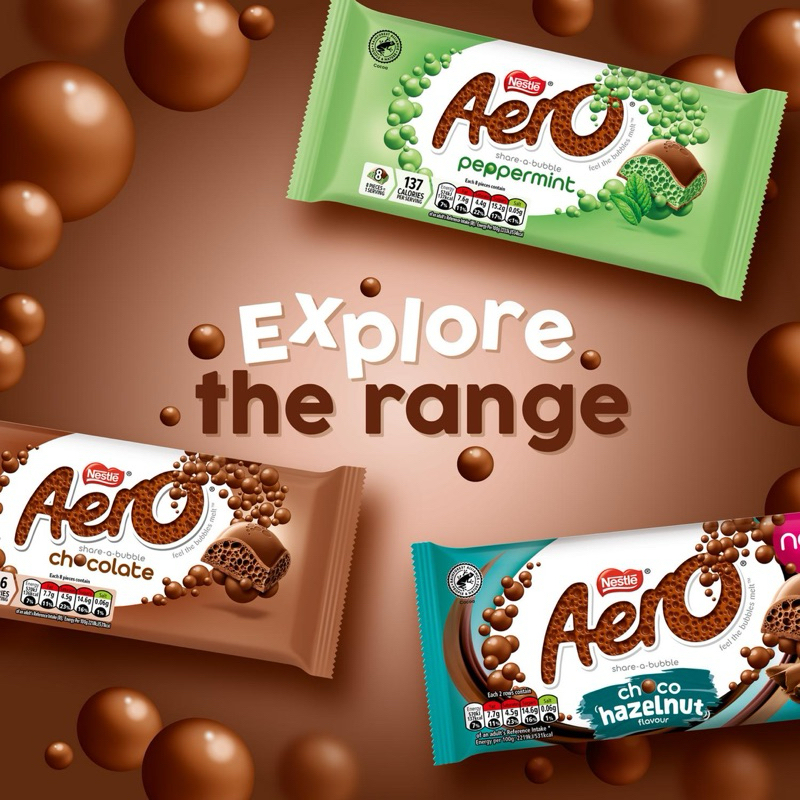 Aero Chocolate Nestle Chocolate Aero Peppermint NEW Aero Choco Hazelnut 90g bar AERO Share A Bubble Chocolate Bars UK