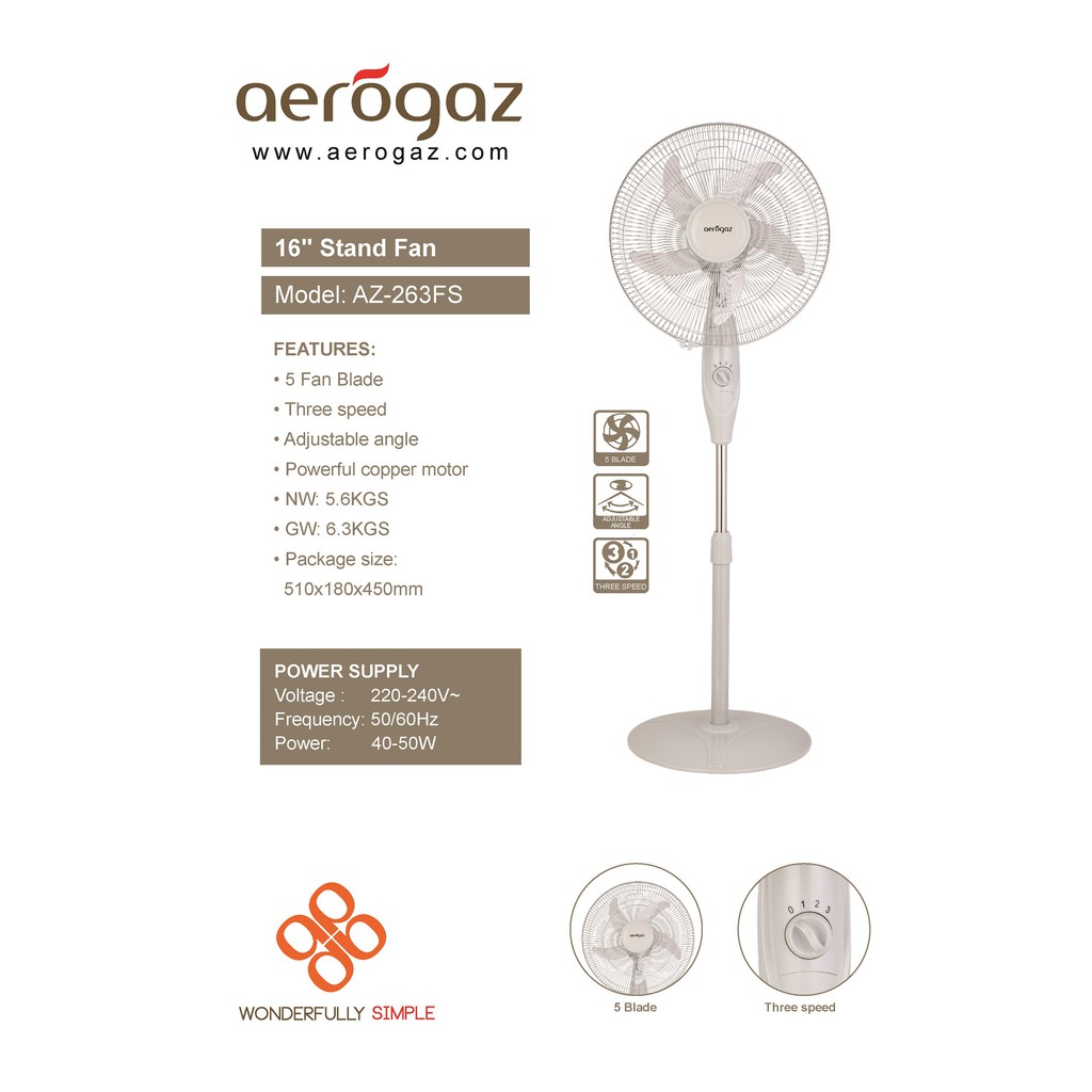 Aerogaz 16inch Stand Fan (AZ 263FS)