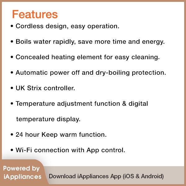 Aerogaz/Mowe Smart Kettle with temperature control / iAppliance app enabled / UK Strix controller
