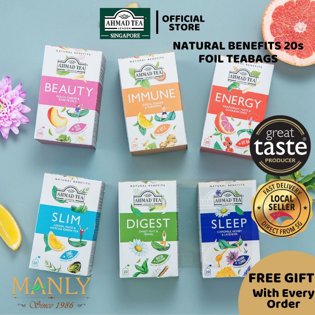 Ahmad Tea Natural Benefits Infusion 20's Foil Teabags - Immune/Slim/Energy/Digest/Sleep/Beauty (Halal)
