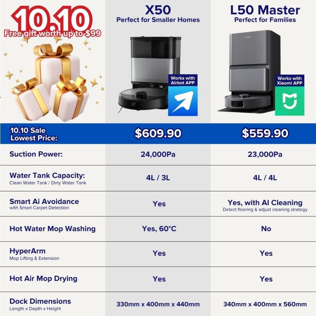 [ NEW ] Airbot X50 | Robot Vacuum 24,000Pa Smart Robot w/ HyperClean™ Auto Maintain Dock Station Robot