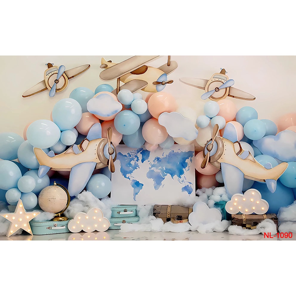Airplane Backdrop Little Boy Pilot Baby Shower Decorations Background Newborn Baby Birthday Party Photography Backdrops