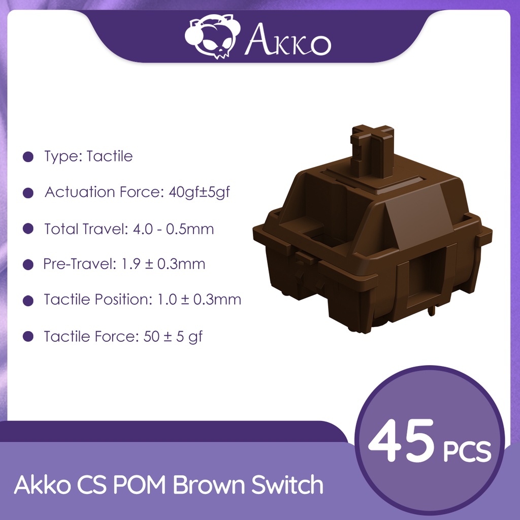 Akko Mechanical Keyboard Switches, 45pcs CS POM Stock Switch, 3-pins Plate-mounted, Replaceable for Outemu Gateron Cherry MX Keyswitch (Pink / Silver / Brown)