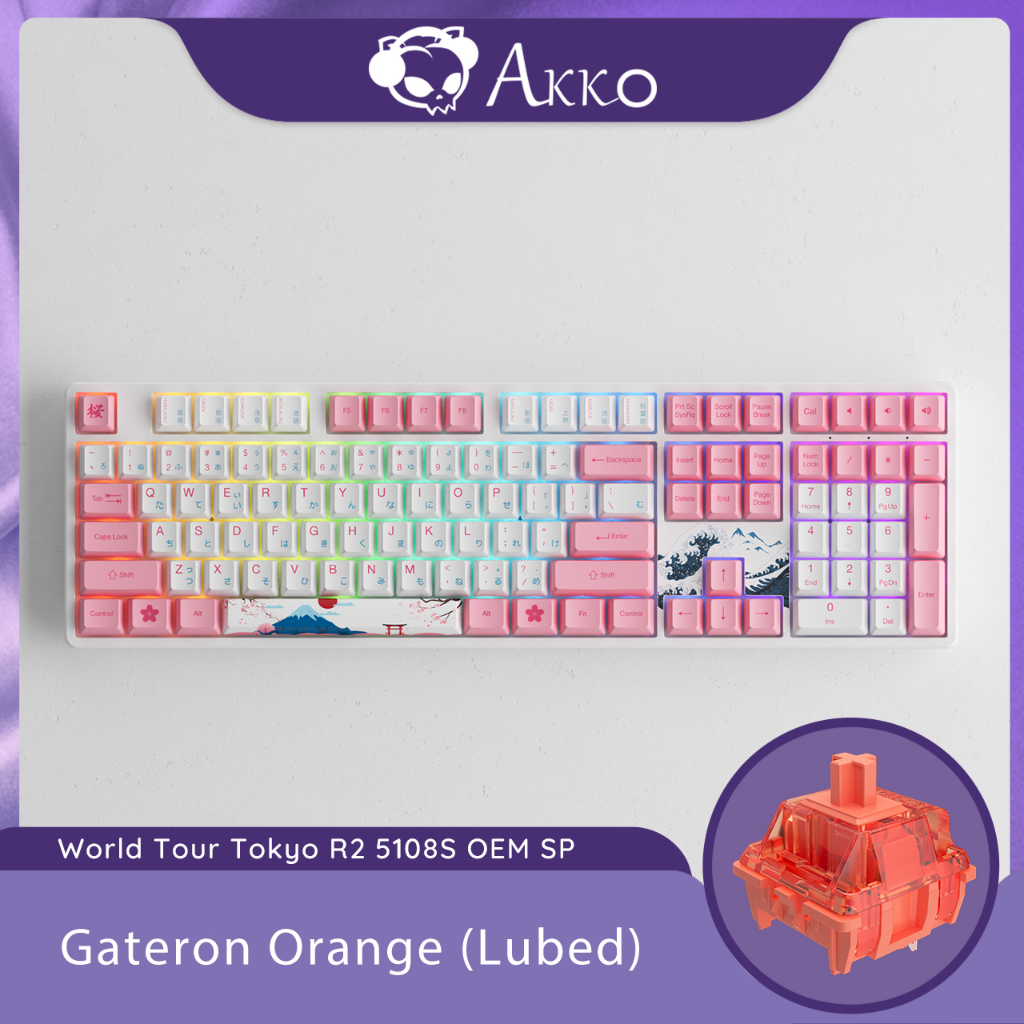 Akko World Tour Tokyo R2 5108S Hiragana Version Hot-swappable Wired Mechanical Keyboard with RGB Backlit, OEM Profile Dye-Sub Keycaps, Full-size Board with Numpad