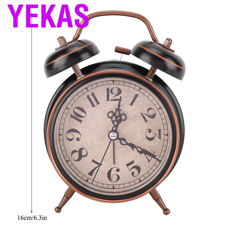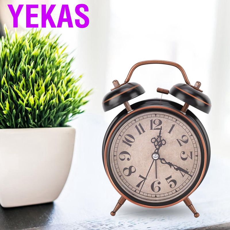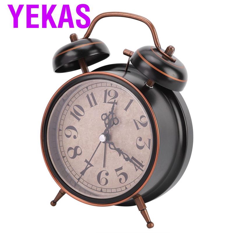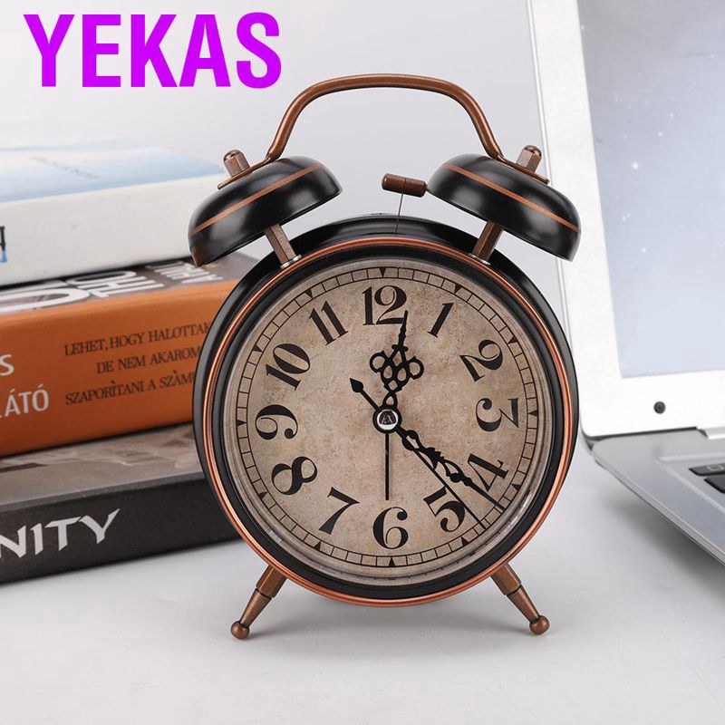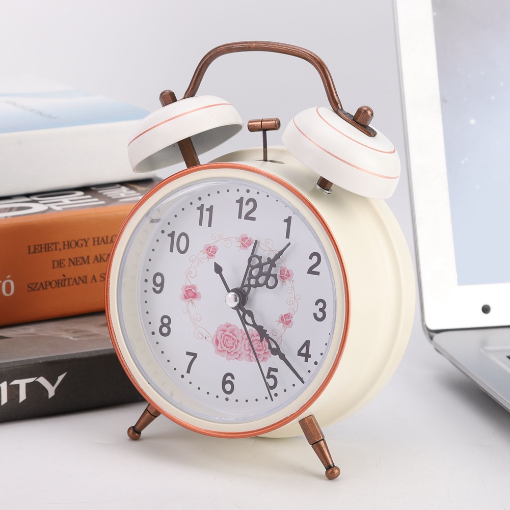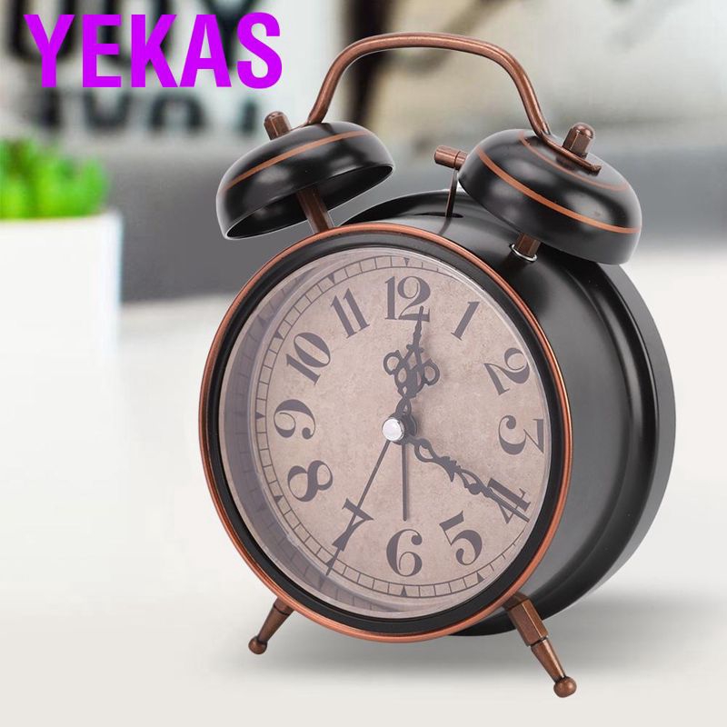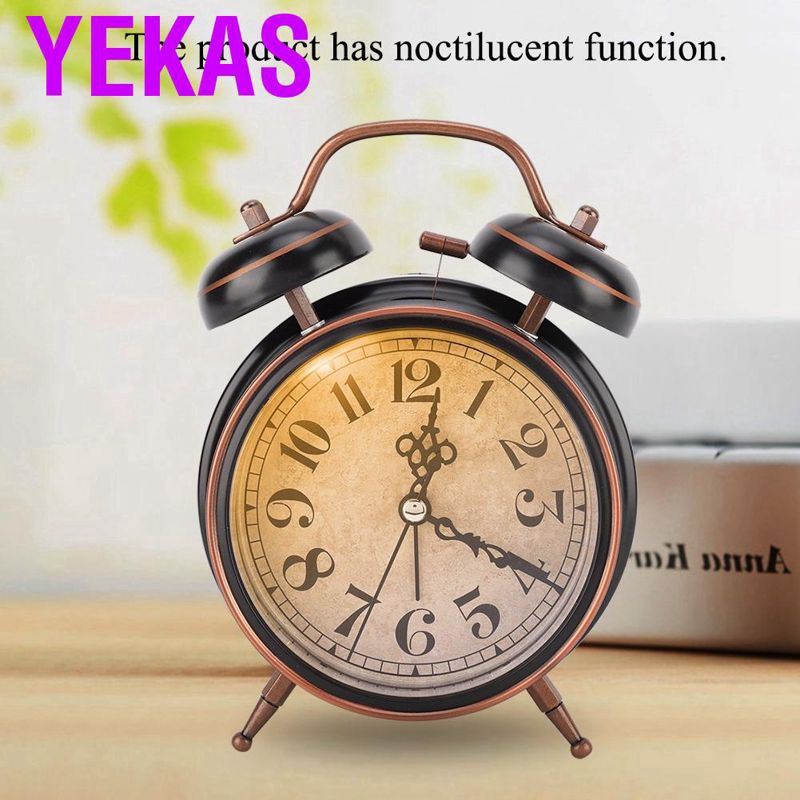 Alarm clock Luminous vintage mechanical manual Double bedroom double bell Time manageme Classic Loud Twin Bell Clock Analogue Bedside Desktop Silent Bells Table Retro Mini