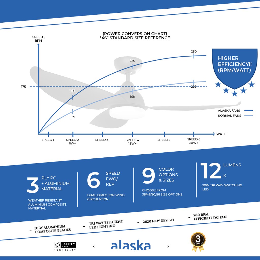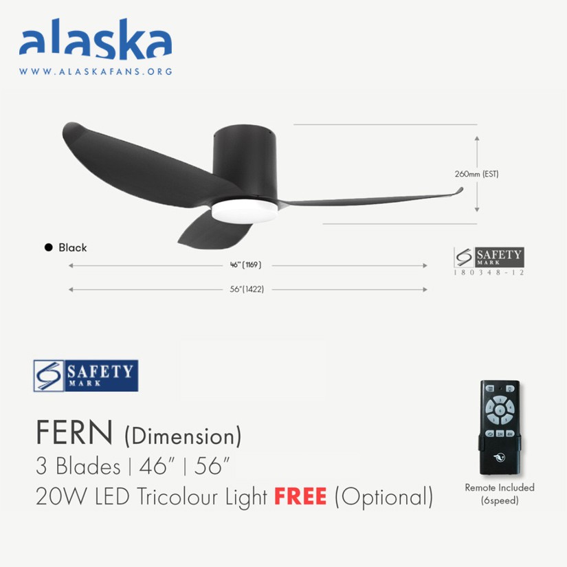 Alaska Fern III 46" 56" Ceiling Fan DC Motor Ceiling Fan with Slim LED 3-Tone