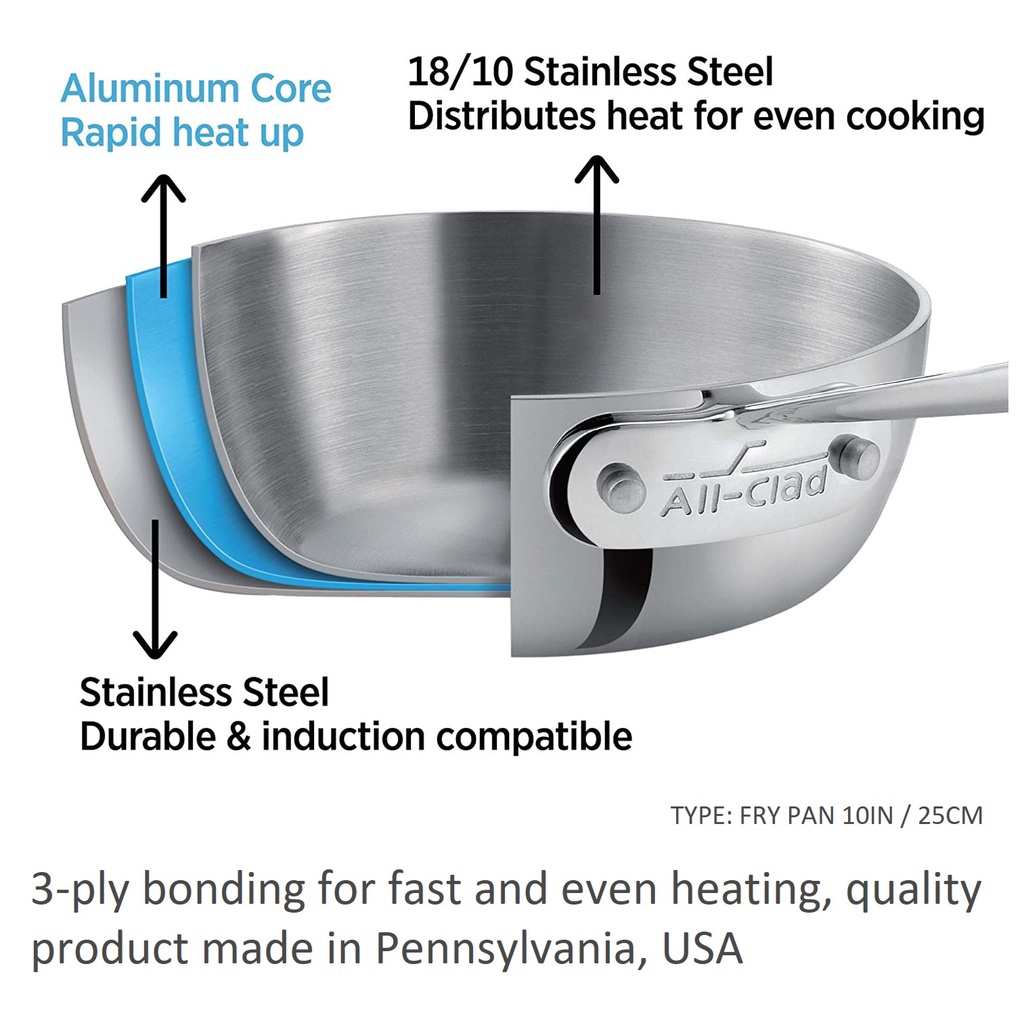 All Clad D3 Stainless Steel Fry Pan / Skillet / Saute Pan (Made in USA All-Clad)