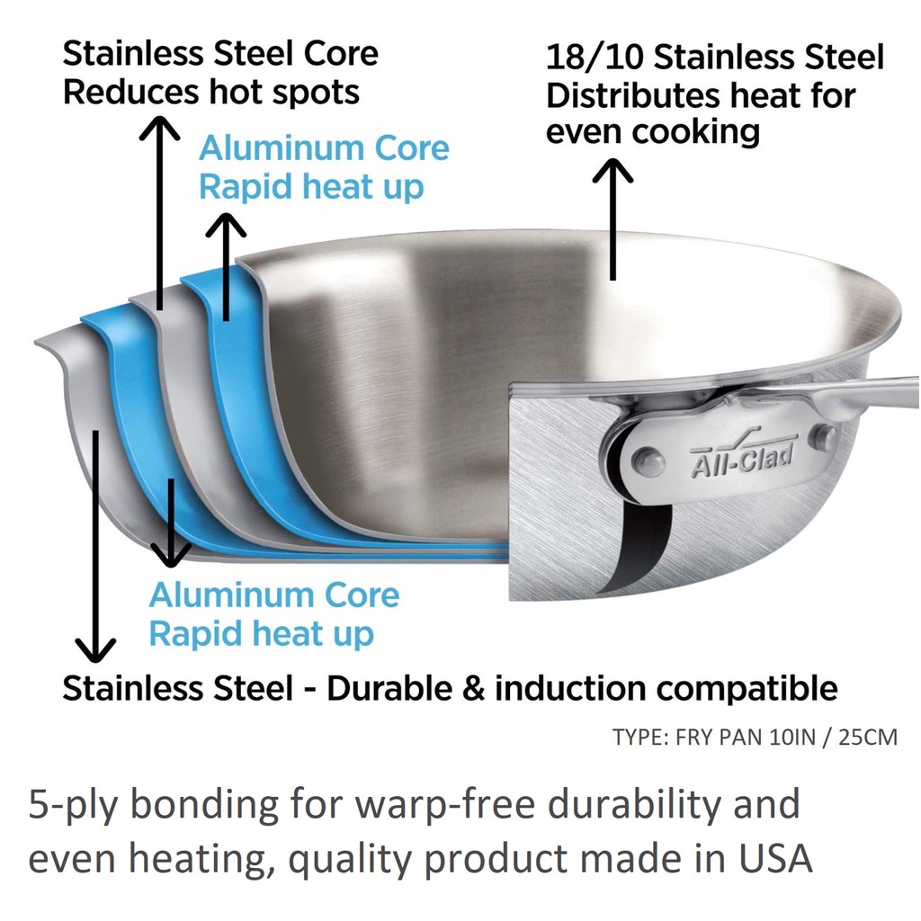 All Clad D5 Stainless Steel / Nonstick Fry Pan Saute Pan (Made in USA All-Clad)