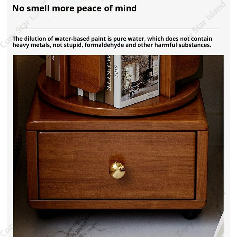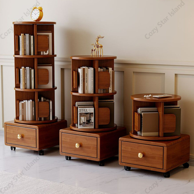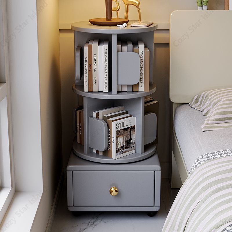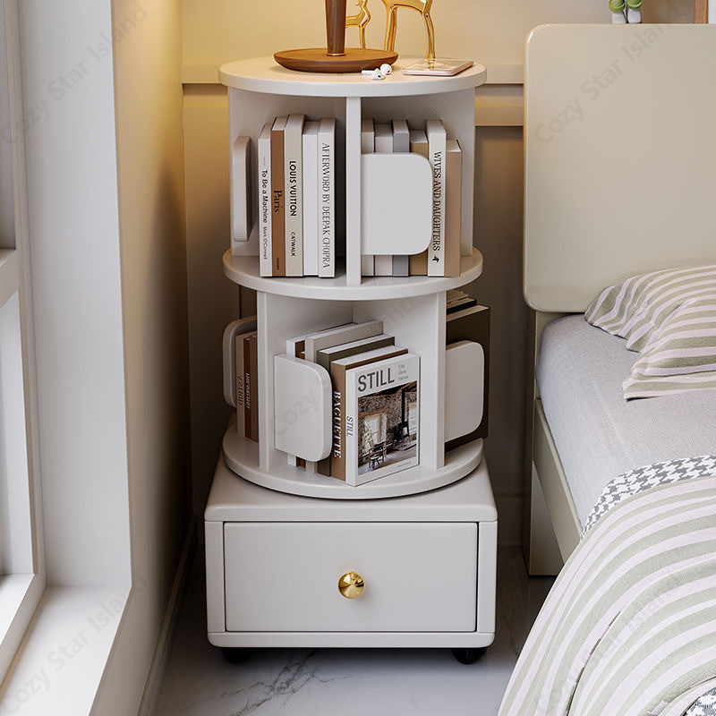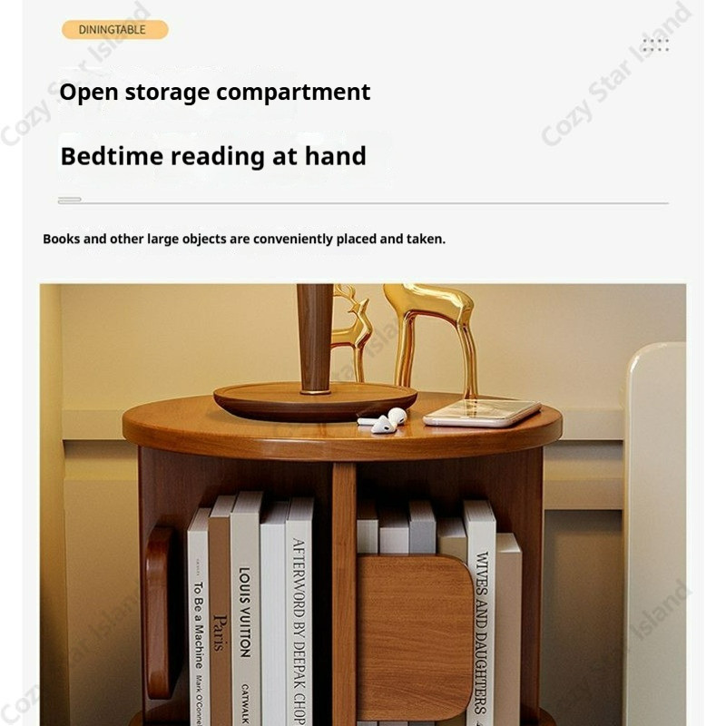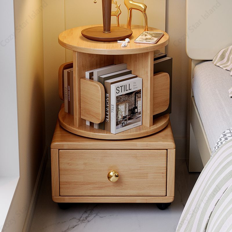 All Solid Wood Rotating Small Bookshelf Simple Bedside Table Bedside Storage Shelf