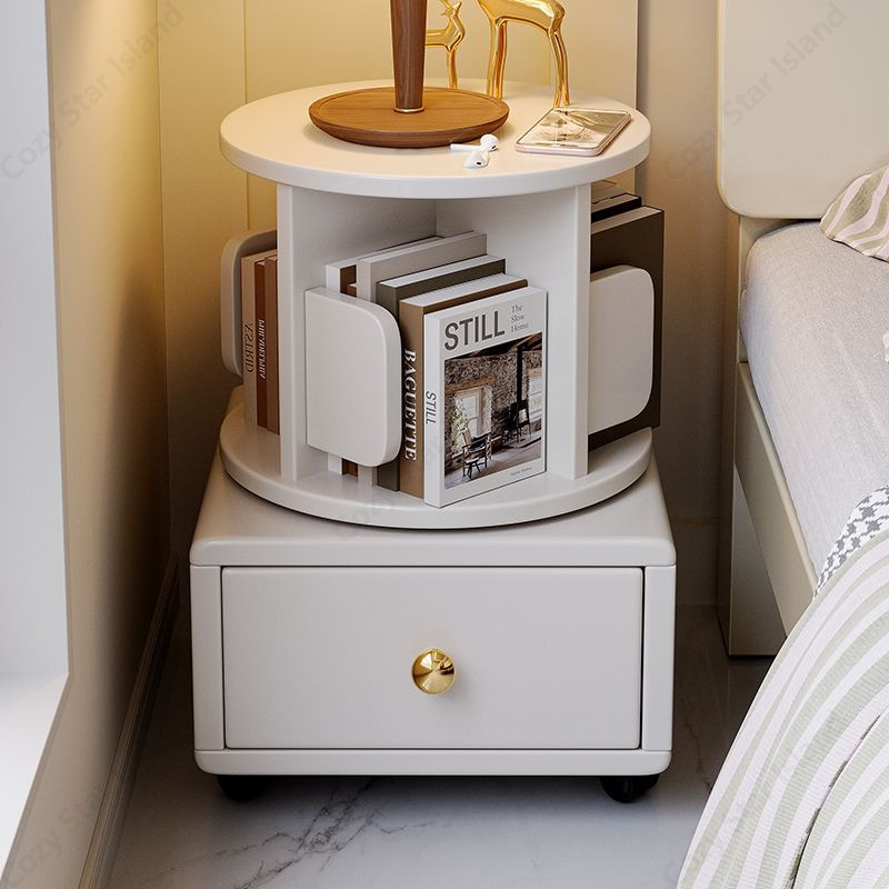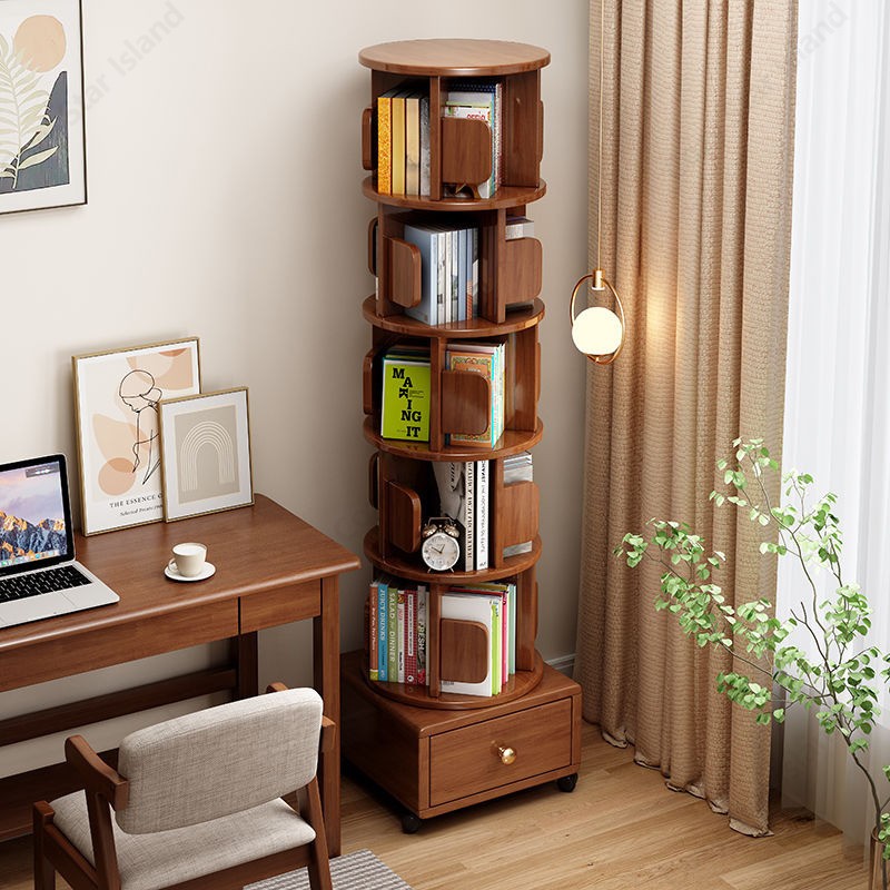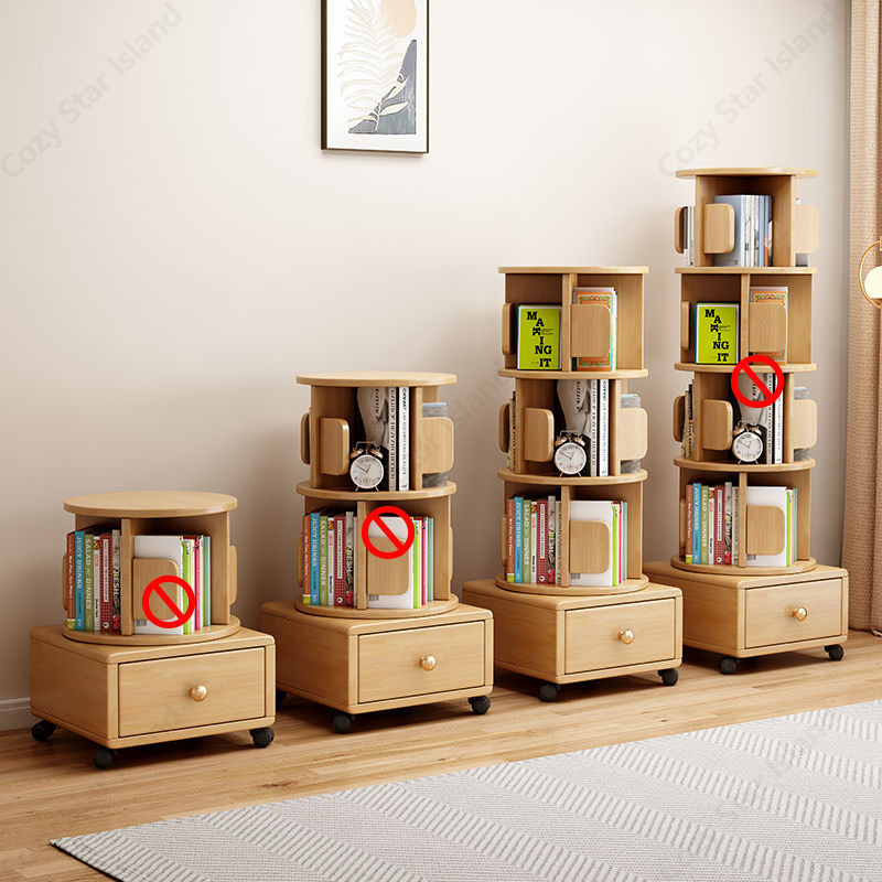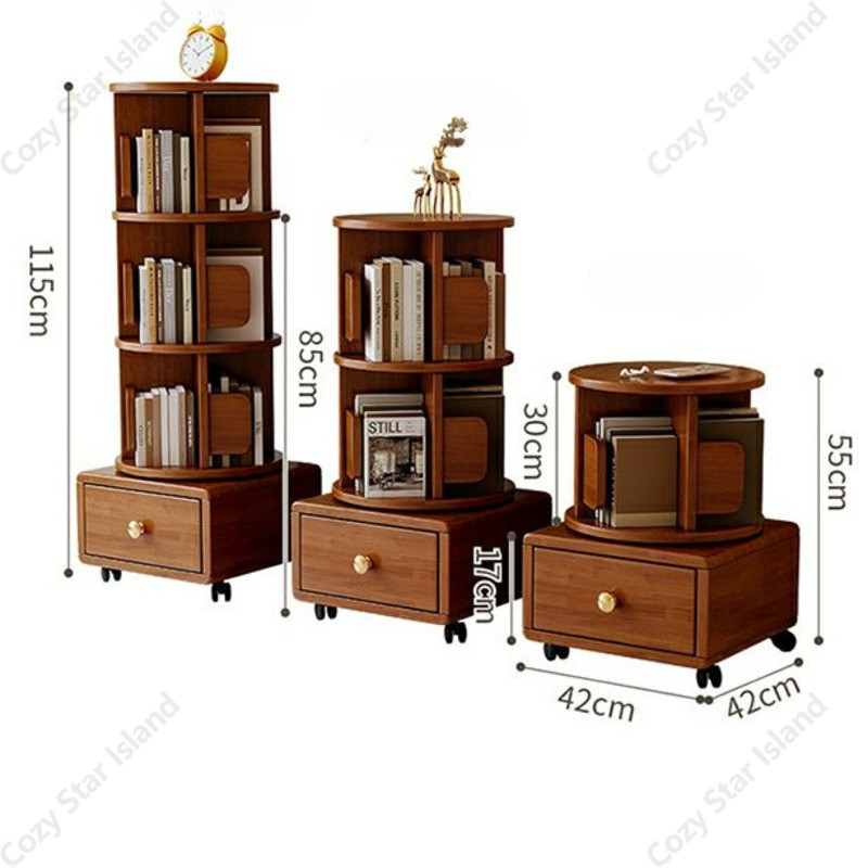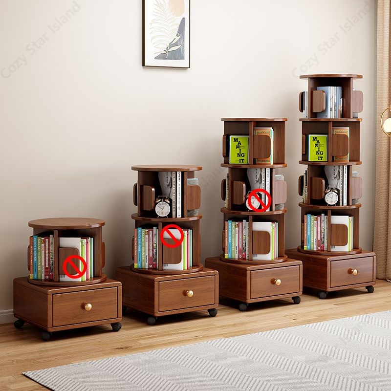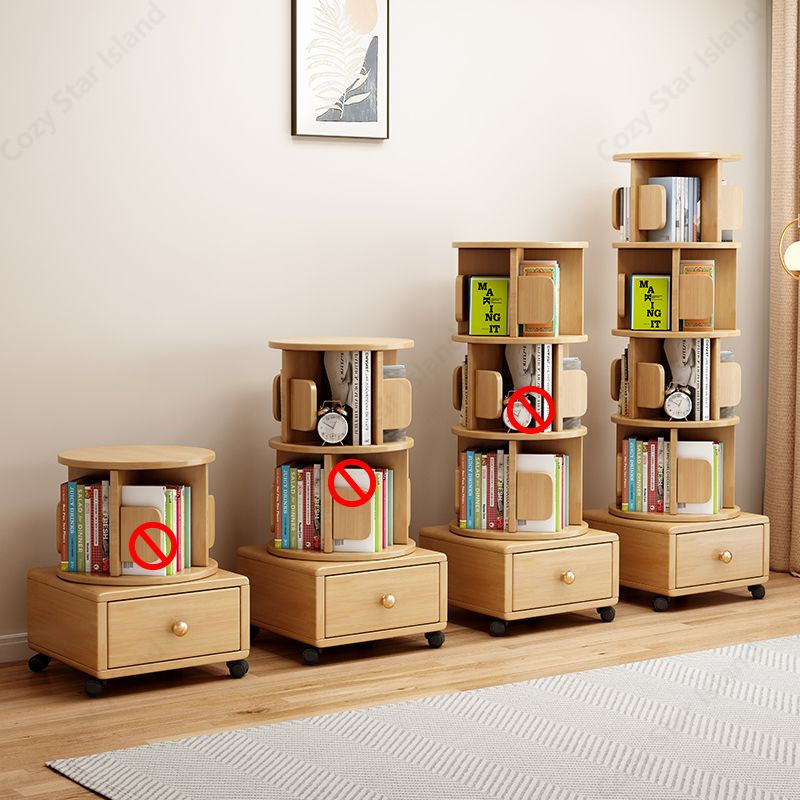 All Solid Wood Rotating Small Bookshelf Simple Bedside Table Bedside Storage Shelf