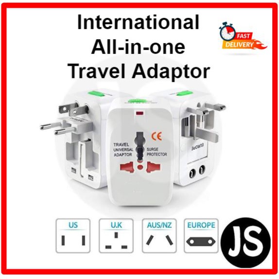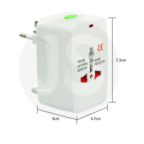 All in one universal travel adaptor without or with 2 usb & surge protector (White/Black)