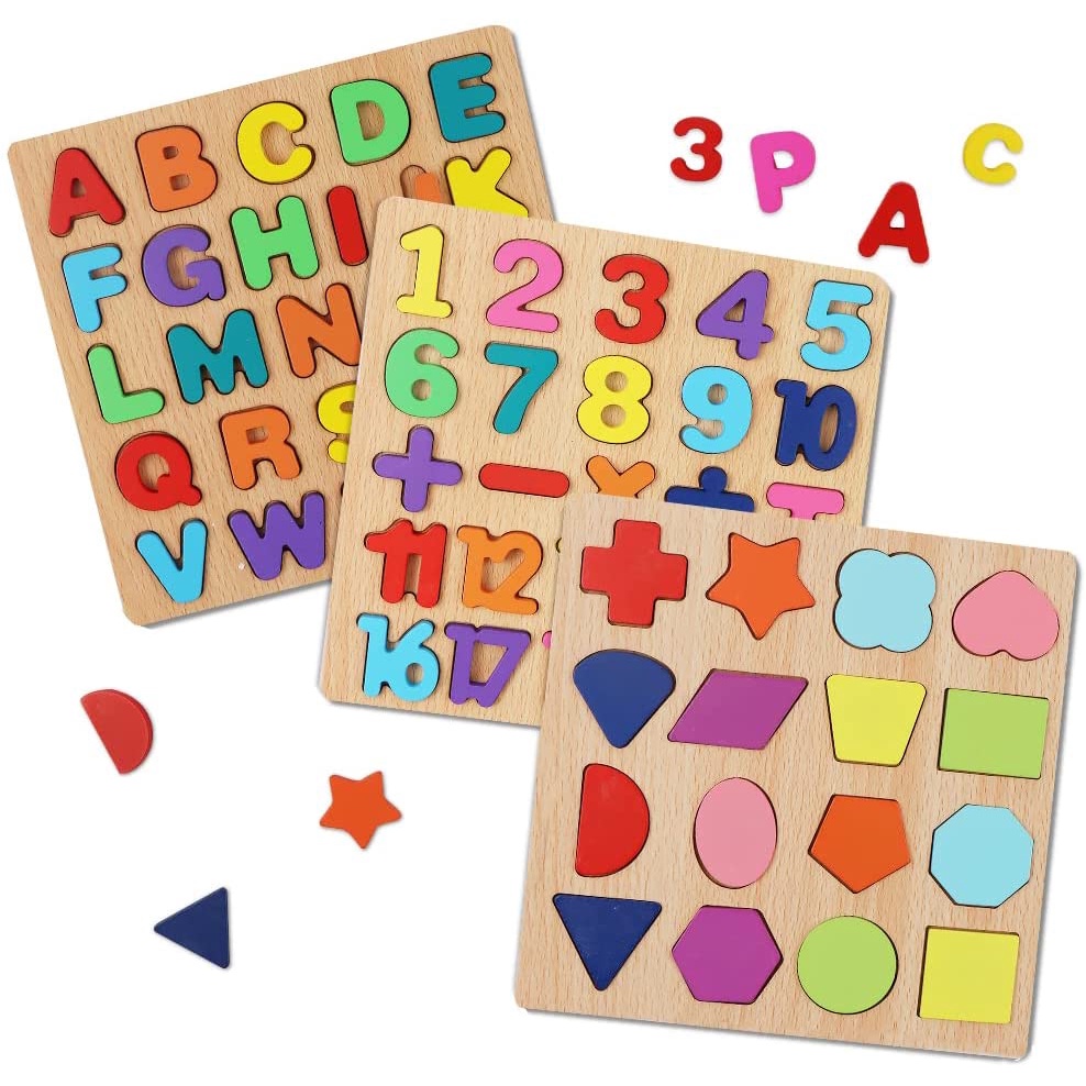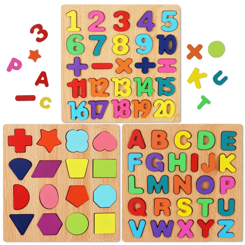 Alphabet Blocks Puzzle Wooden ABC Educational Puzzle Toy Board Jigsaw Puzzle Wooden Blocks Shape Numble Toys