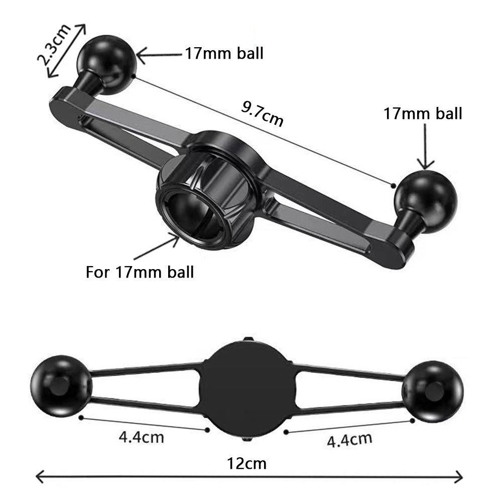 Aluminum Alloy 17mm Ball Mount Splitter Adapter 1 To 2 Head Joint Extension Connector Base for Car Mobile Phone Holder