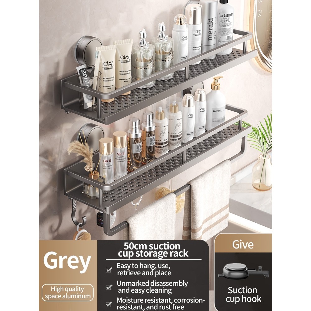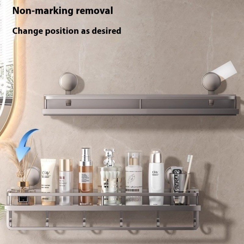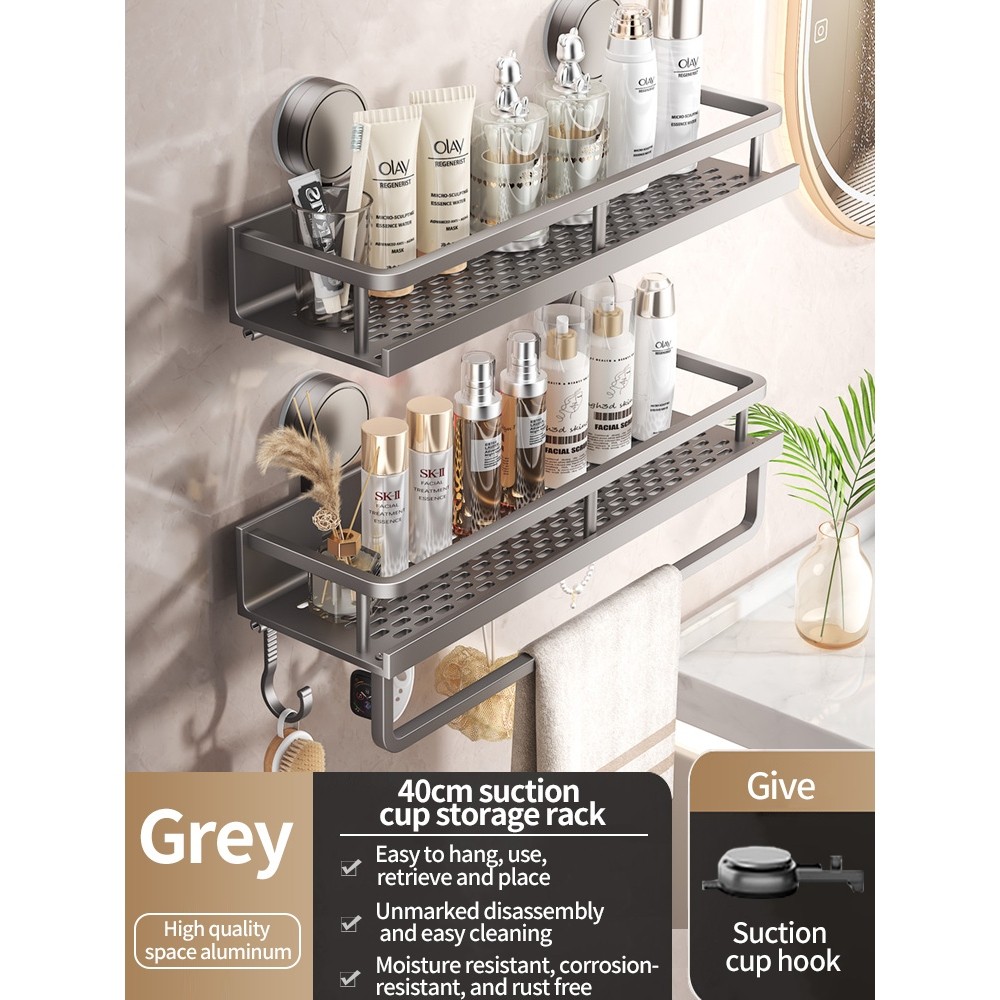 Aluminum Bathroom Shelf With Suction Cup No Drilling Toilet Shelf Wall Shampoo Holder Bathroom Organizer