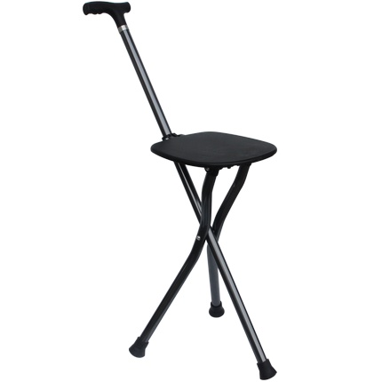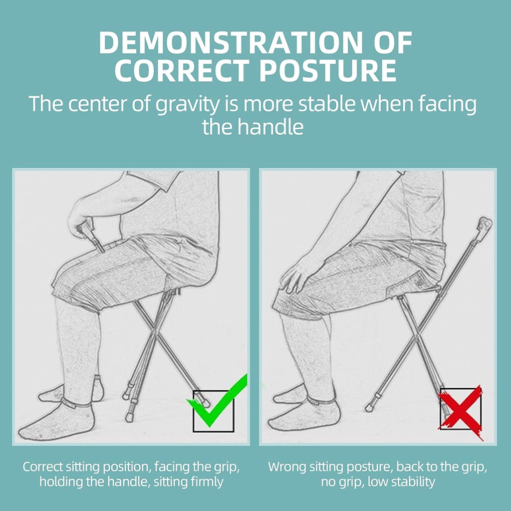 Aluminum Walking Stick Tripod Cane with Black Foldable Seat Max 100 Kg Elderly Cane Chair Walking Cane Stool