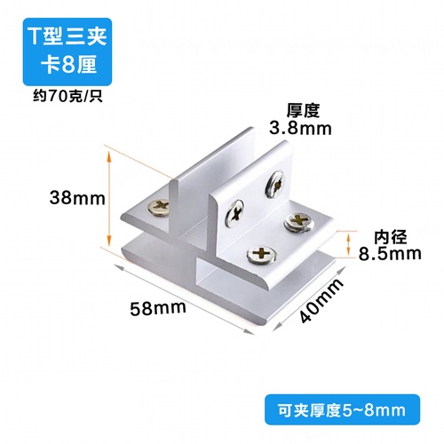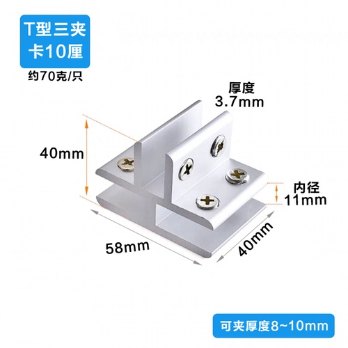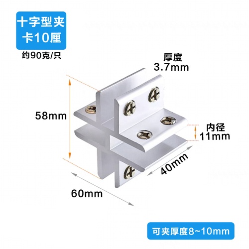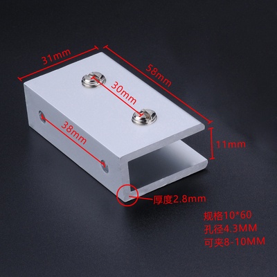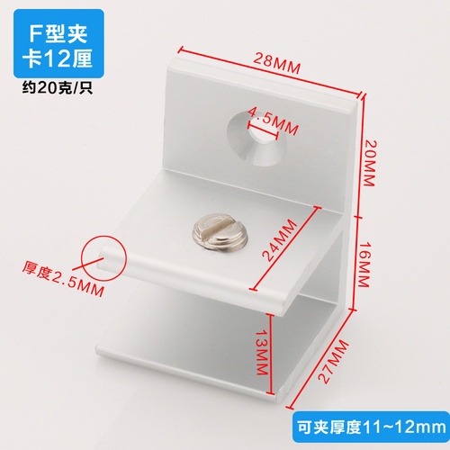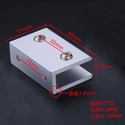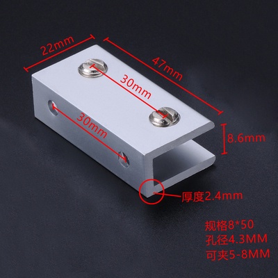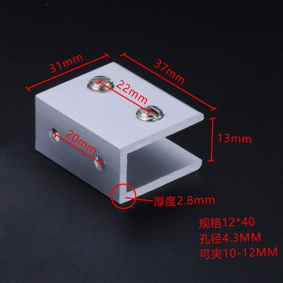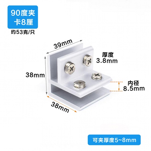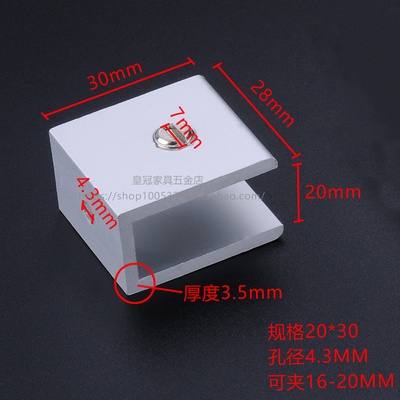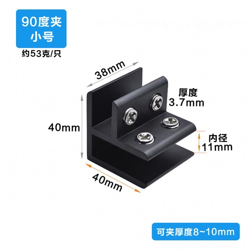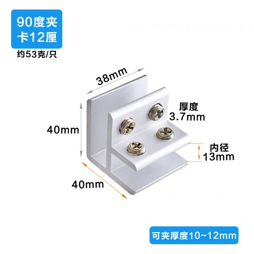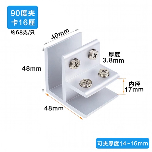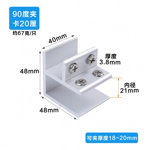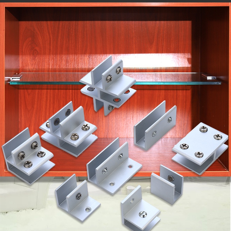 Aluminum alloy glass clip display cabinet fixing clip glass cabinet clip partition plate fixing clip 90 degree right Angle fixing clamp bracket U-shaped Hardware accessories