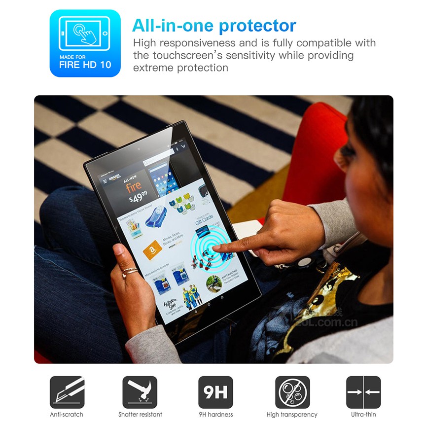 Amazon Fire HD 10 Tempered Glass Clear Screen Protector Compatible with 7th Gen / 9th Gen