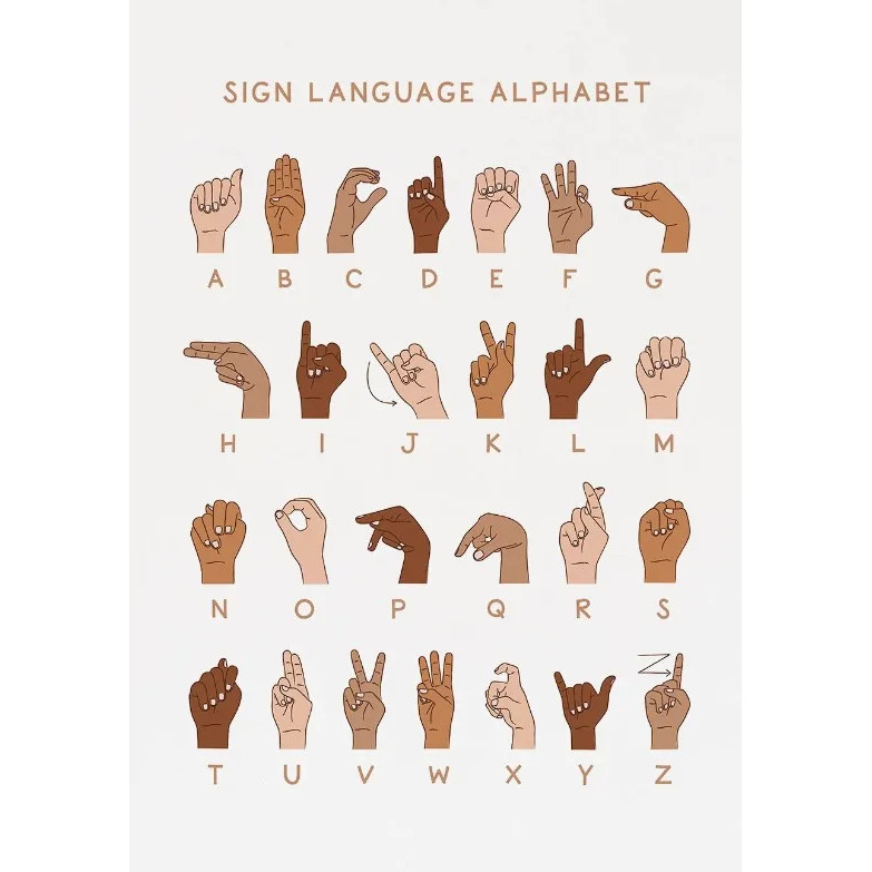 American Sign Language Poster ASL Poster Canvas Painting Alphabet Wall Art Educational Classroom Decor Language Alphabet Prints FTTC