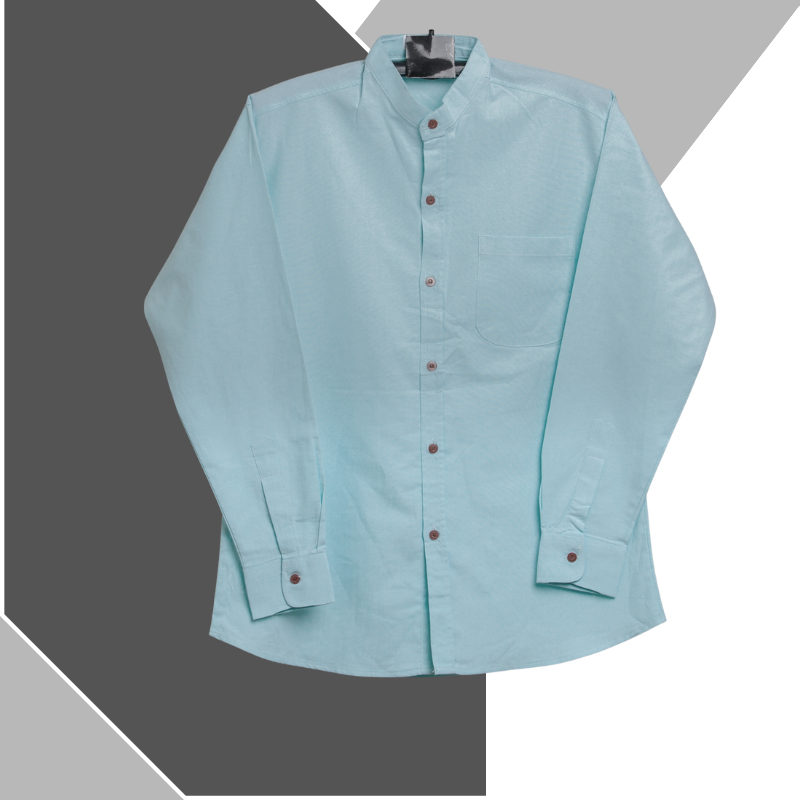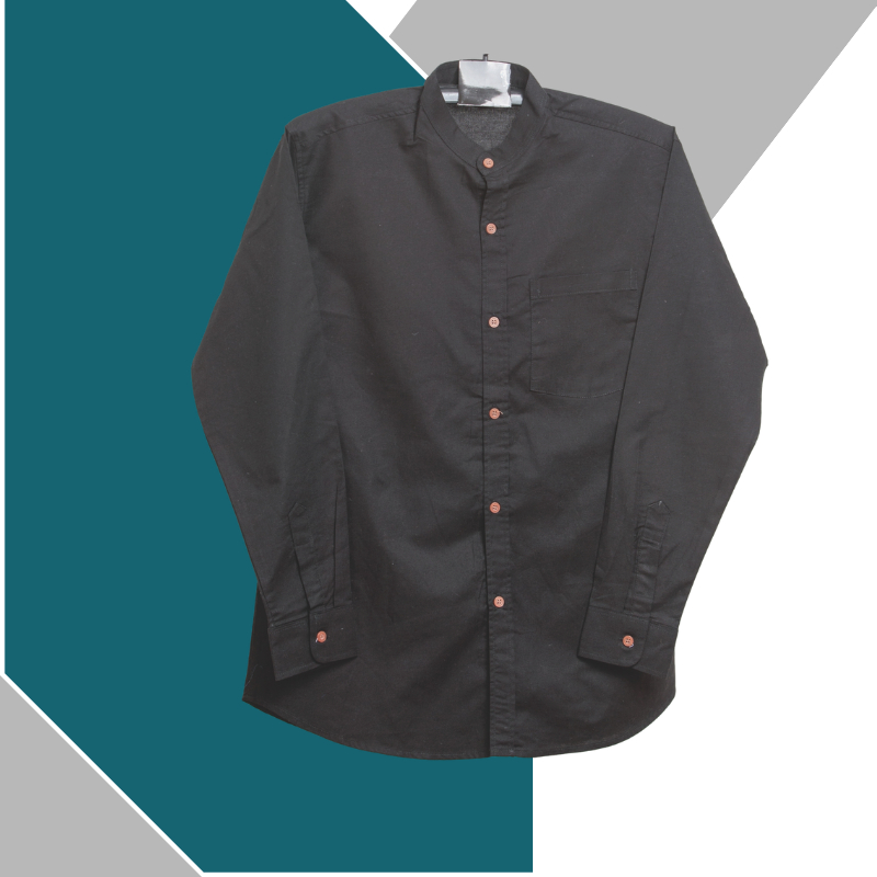 Chinese Collar Shirt Long Sleeves Navy Blue (Straight Style) With Chest Size 38-56 Inches