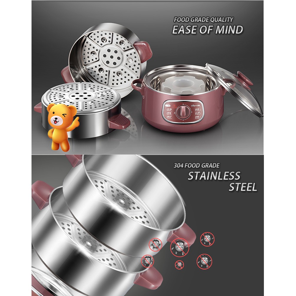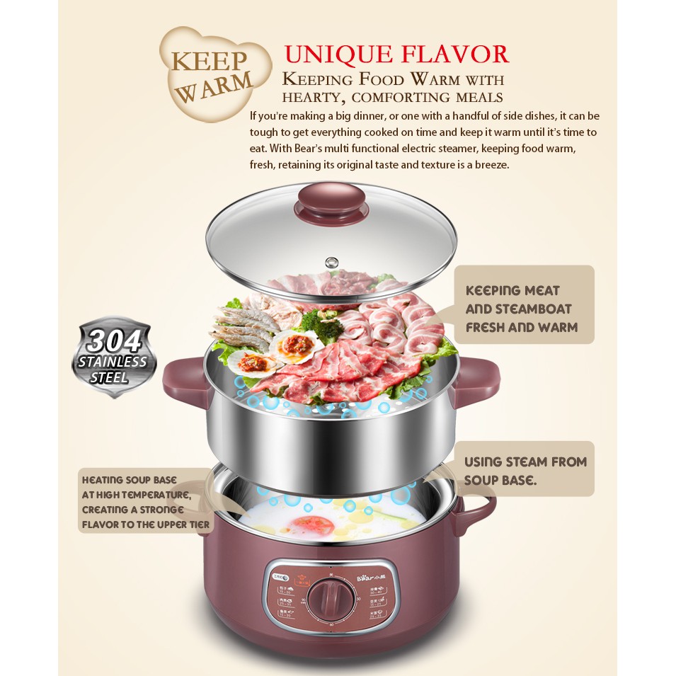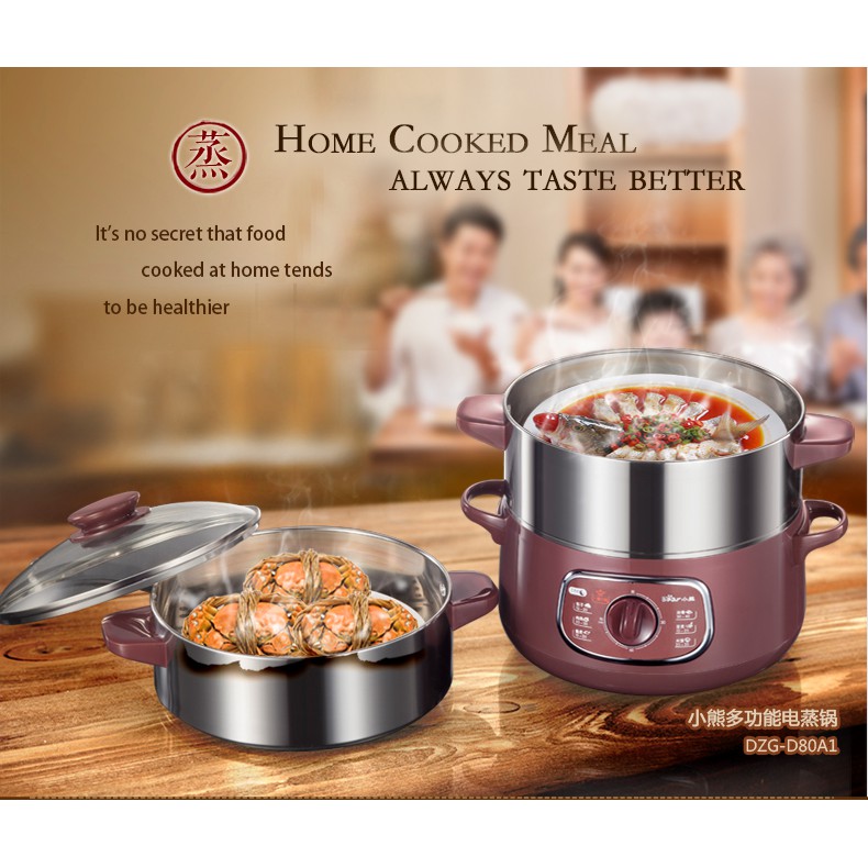 Bear 2in1 Steamer & Steamboat 2 Tier Stainless Steel convenient Steamer 8.0L 800Watt, Food Steamer (DZG-D80A1)