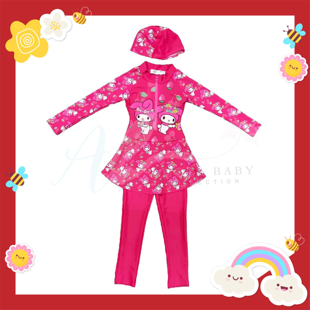 Angel Baby Kid Kuromi My Melody One Piece Swimwear Kids Swimming Suit Baju Renang Baju Mandi