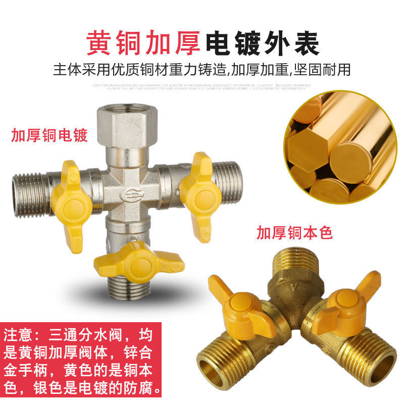 Angle Valve Faucet with Switch Water Divide Valve Thickened One-in Two-Three-Outlet Three-Way Water Heater Washing Machine Shunt