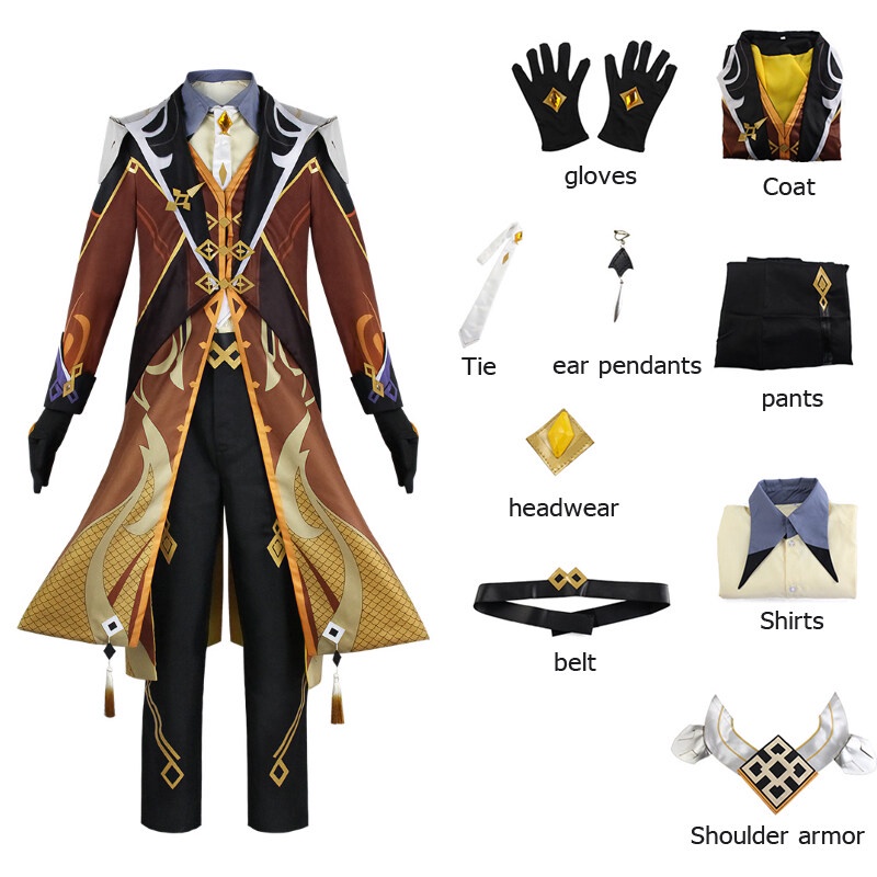 Anime Genshin Impact Cosplay Costume Zhongli Full Uniform Sets Game Character Robe Halloween Fancy Outfit