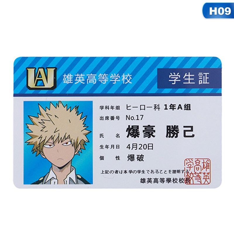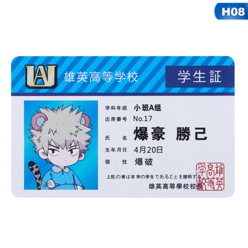 Anime My Hero Academia Character ID Card Student Commemorative Card Waterproof