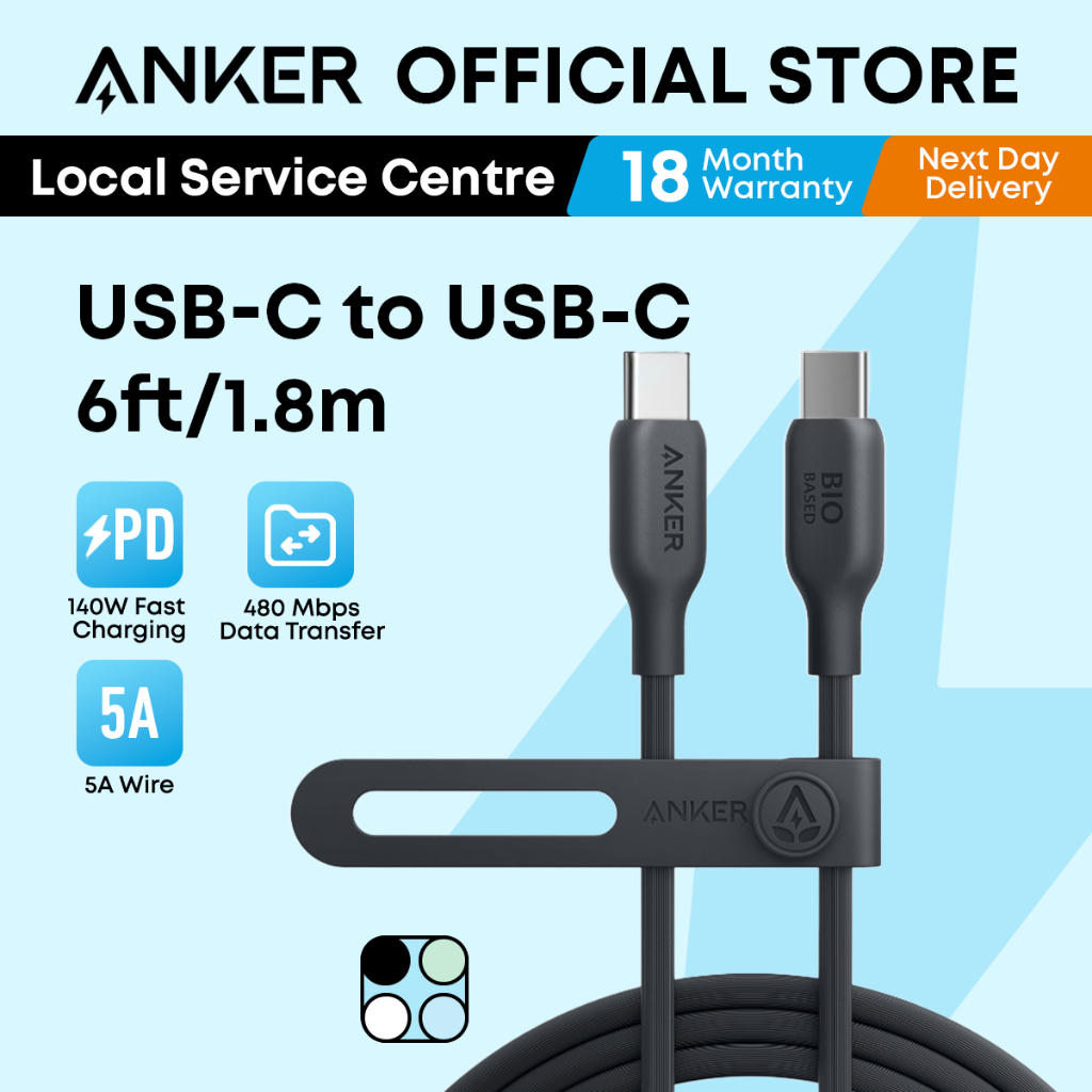 Anker 544 USB C to USB C Cable 6ft/1.8m 140W Fast Charging Bio-Based Nylon Type C Cable A80F2