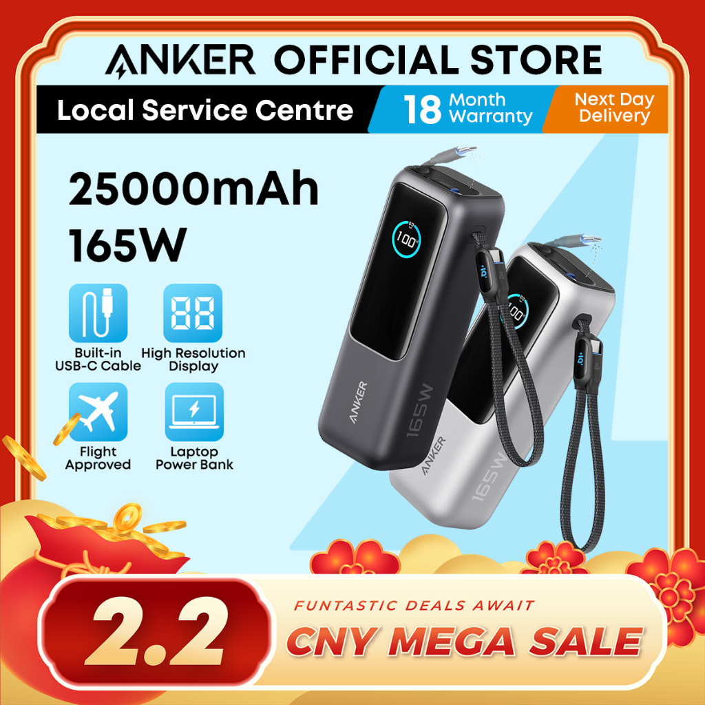 Anker Laptop Power Bank 25000mAh 165W Fast Charging Built-in Dual USB C Cable Portable Charger A1695