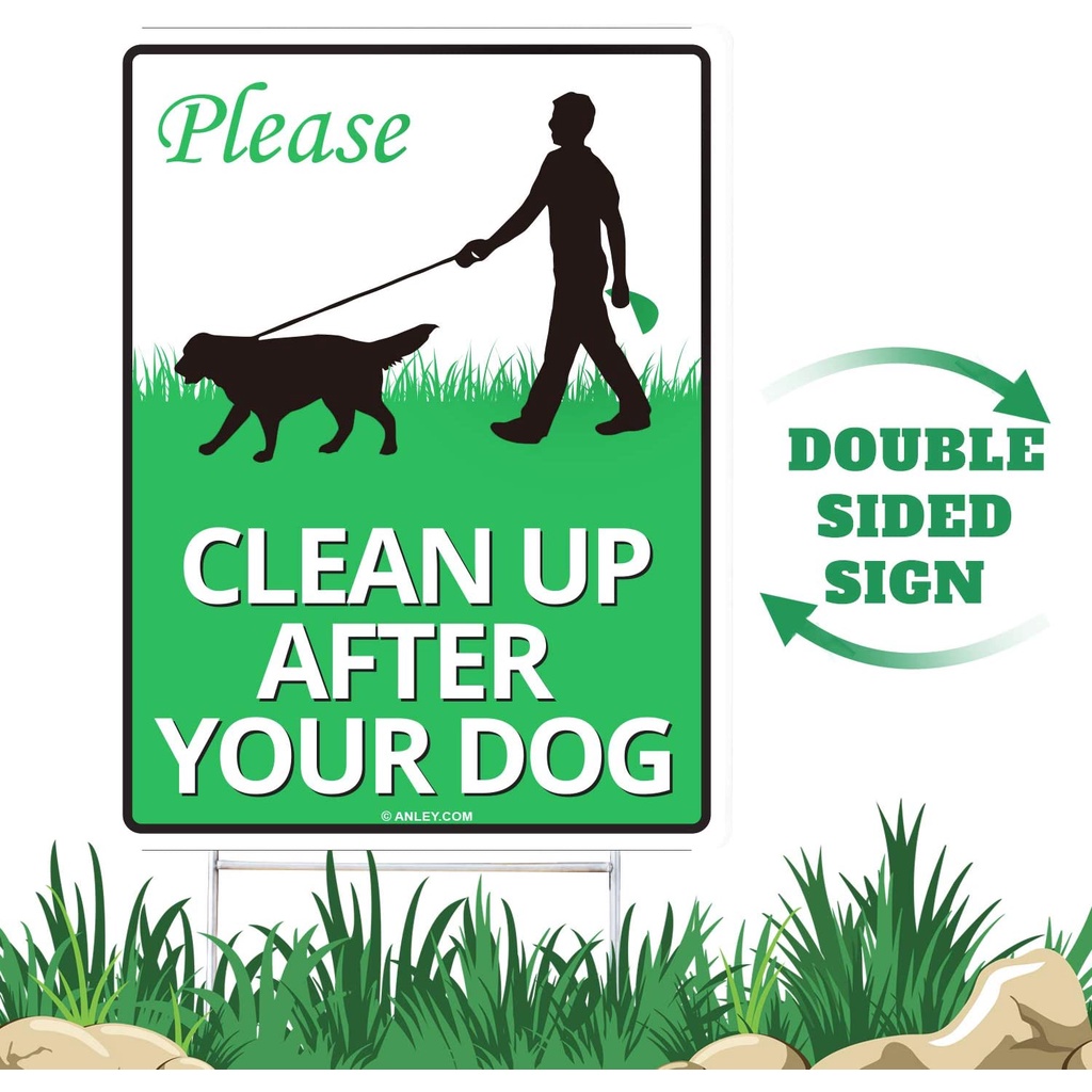 Anley Clean Up After Your Dog Yard Sign 12" x 9" with Metal H Stake Stand
