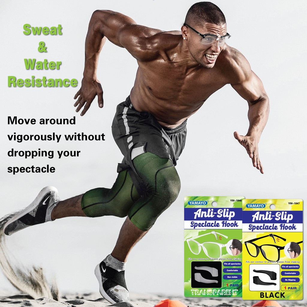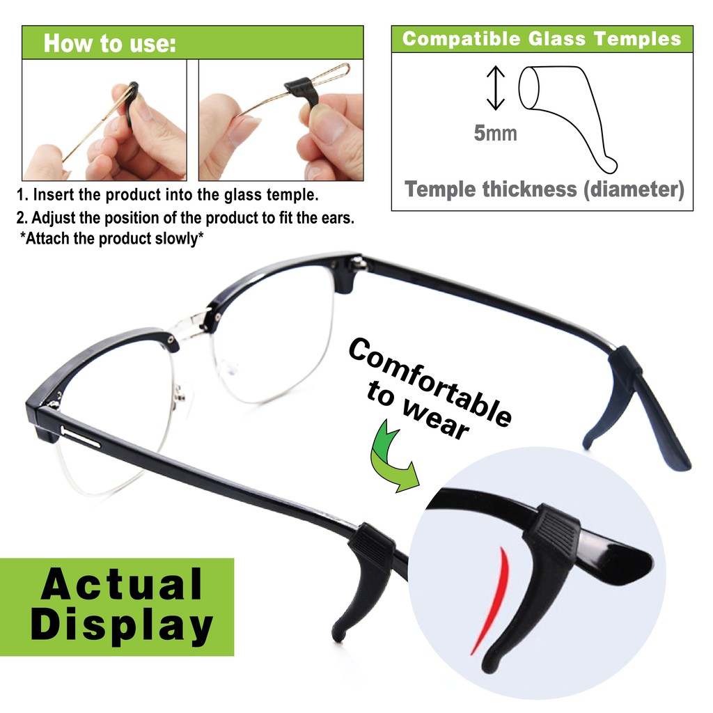 Anti Slip Ear Hook Eyewear Accessories || Eye Glasses Silicone Grip Temple Tip Loop Holder || BLACK /CLEAR