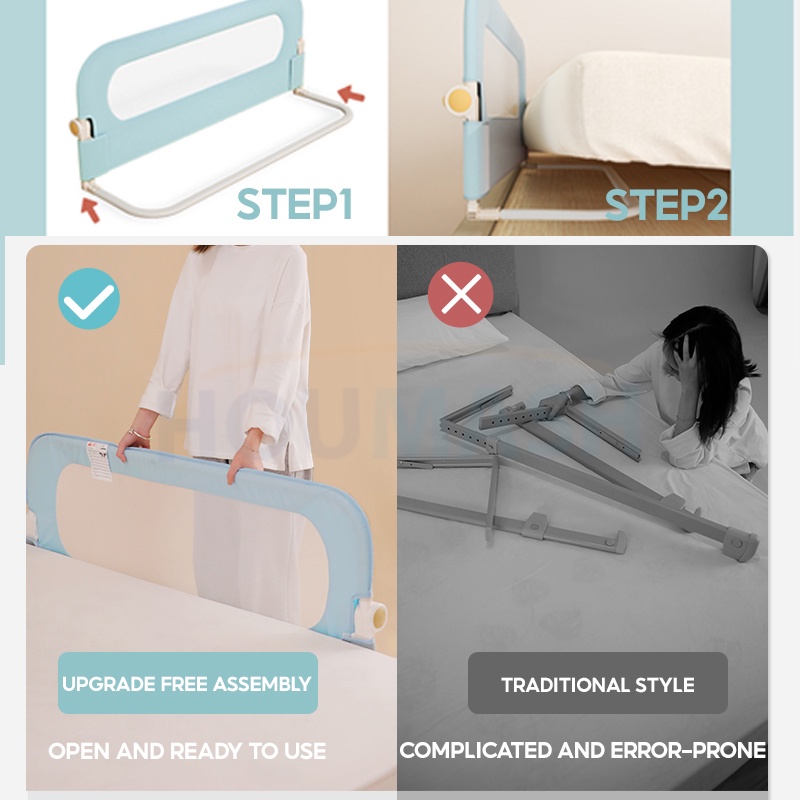 Anti-fall Baby Guard Rail Safety Bumper Fence Free Assembly Foldable Bed Barrier for Baby Kids