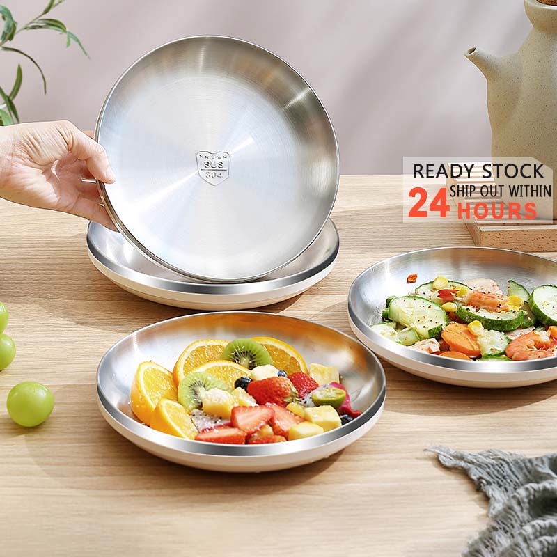 Anti-scald 304 Stainless Steel Plate Food Dish Dinnerware Kid Plate Tableware Western-style Food Plate