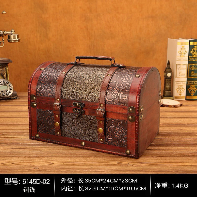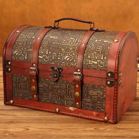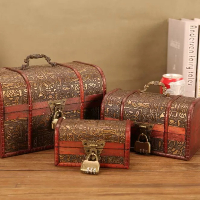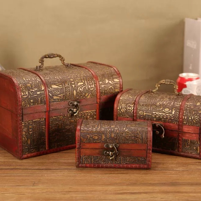 Antique Vintage Wooden Treasure Chest Box Decorative Wood Jewelry Storage Trunk Box with Metal Lock for Pirate Jewelry