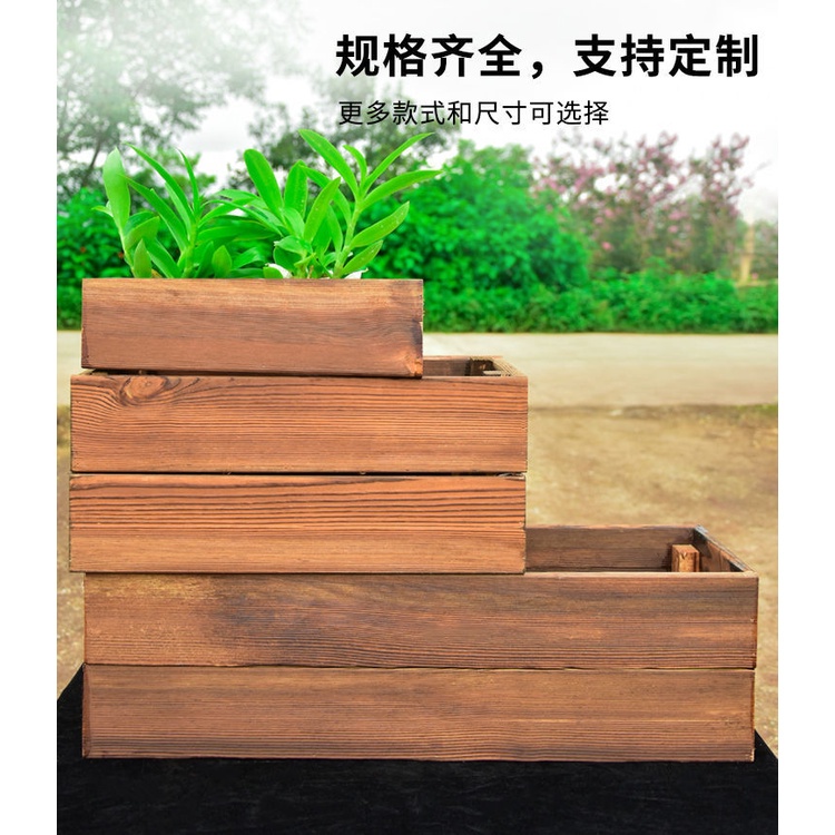 Antiseptic Wood Flower Box Rectangular Carbonized Solid Wood Flower Pot Gardening Indoor Outdoor Balcony/Wooden Succulent Planters Plant Flowerpot Flower pot