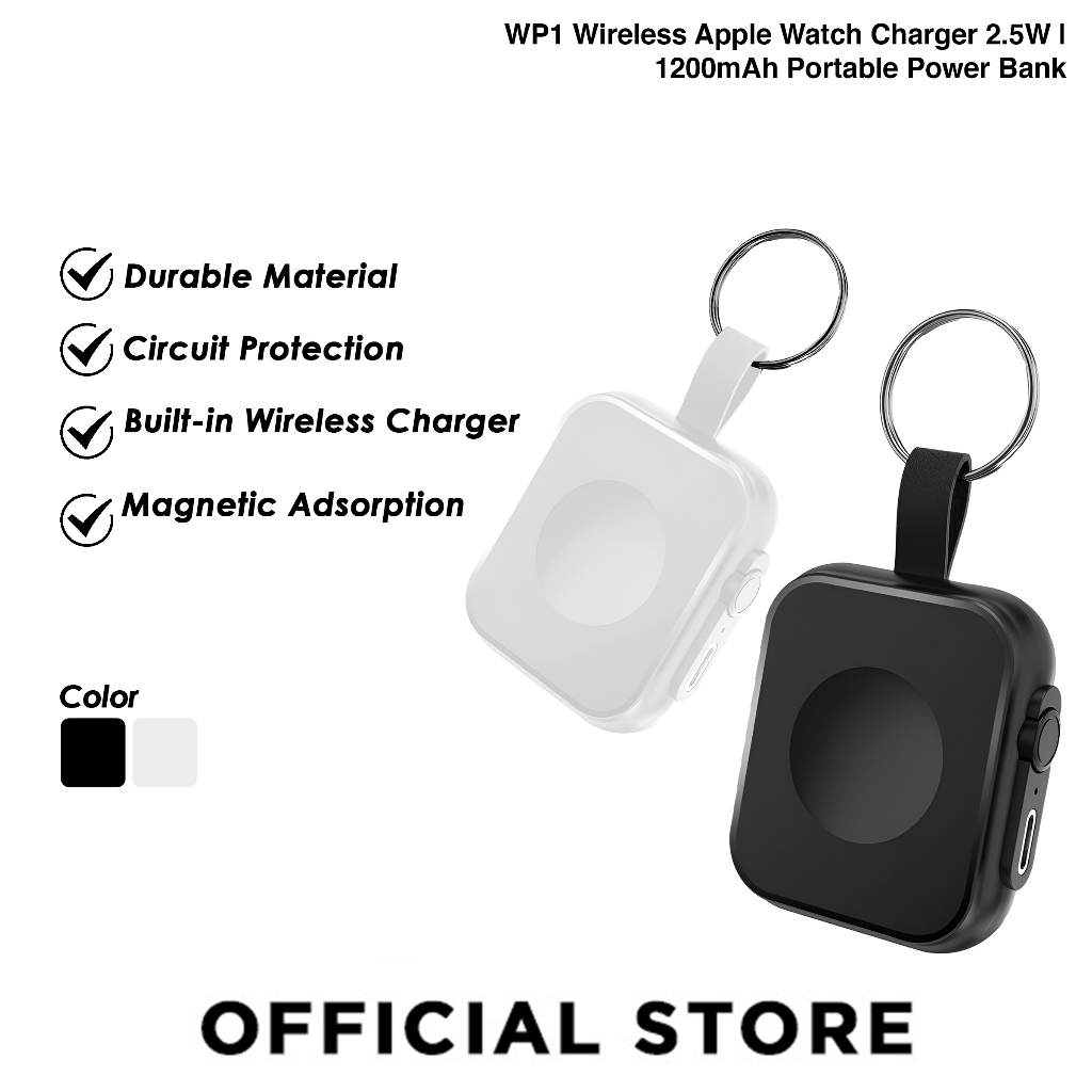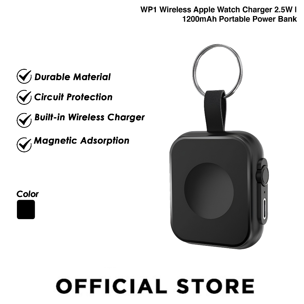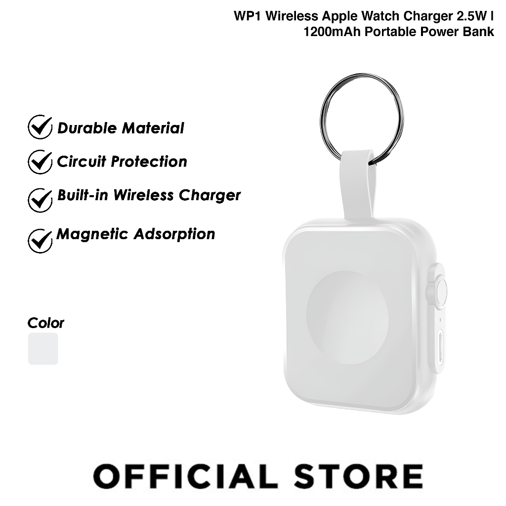 WP1 2.5W Wireless Ma-gnetic Apple Watch Charger | 1200mAh Portable Power Bank | USB-C Fast Charging