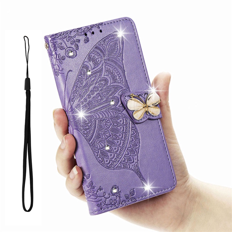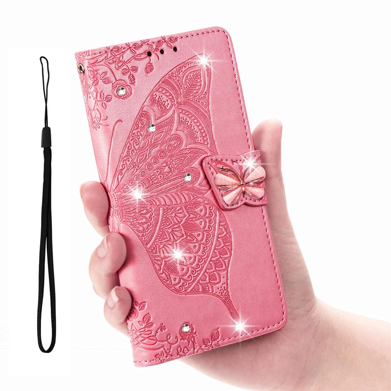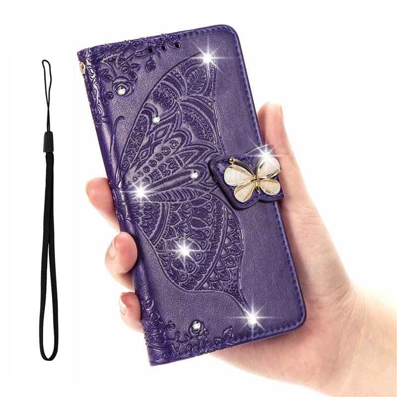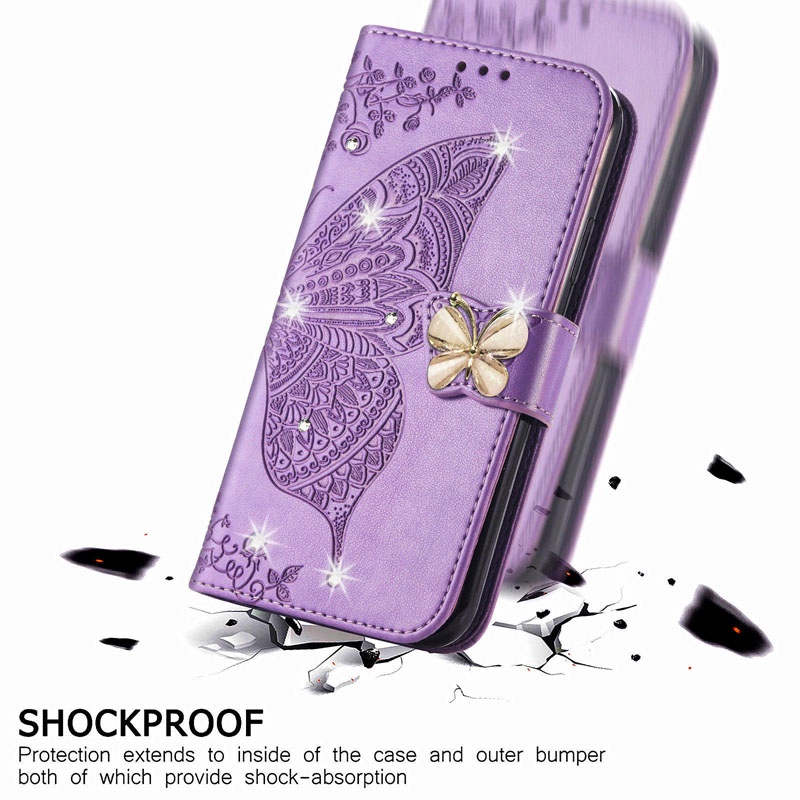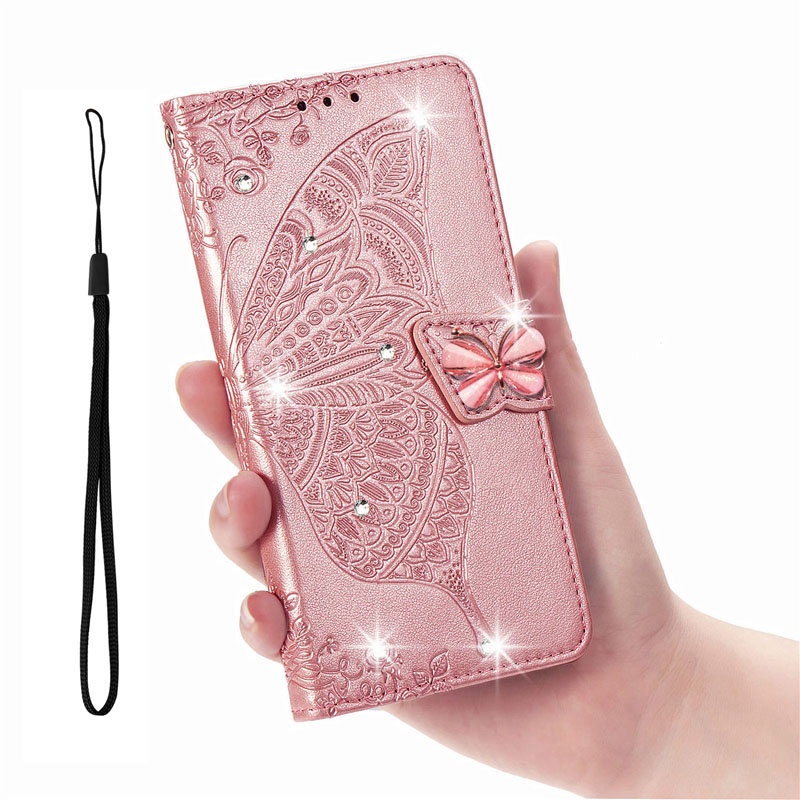 Apple iPhone 13 12 14 Pro Max XR XS Glitter Bling Diamond Card Holder Flower Leather Cover Case Fashion Flip Cover Wallet Case Crystal Bowknot Magnetic Case