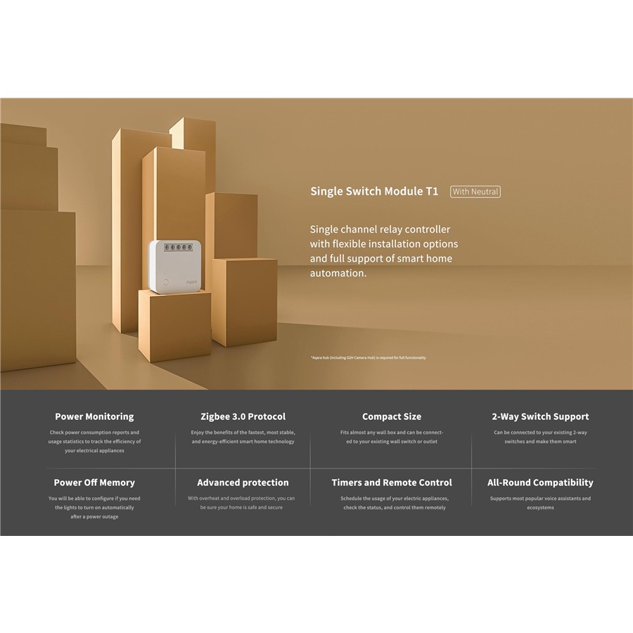 Aqara Single Way Control Module T1 Zigbee 3.0 Wireless Relay Controller 1 Channel With/No Neutral Remote Work with Apple Homekit