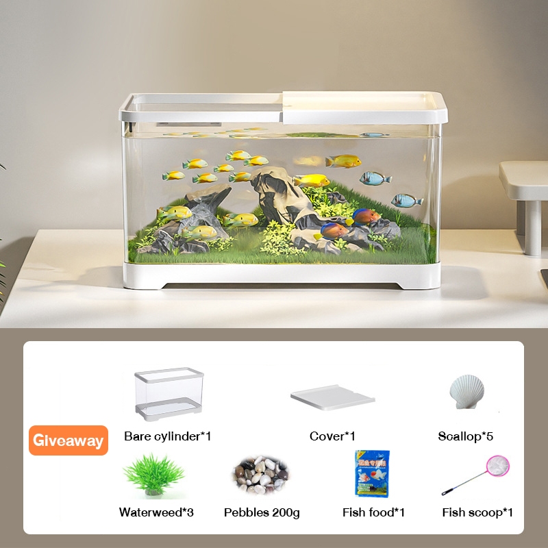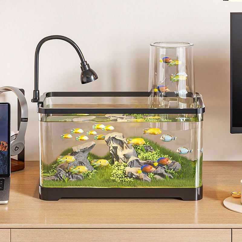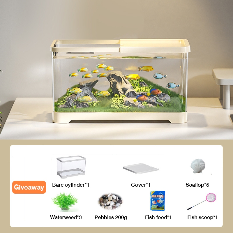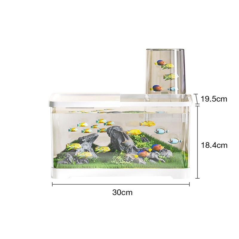 Aquarium Fish Tank Desk Aquarium Set AS Plastic Aquarium With Water Pump Mini Fish Tank for Beginners Small Fish