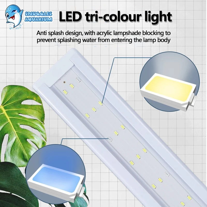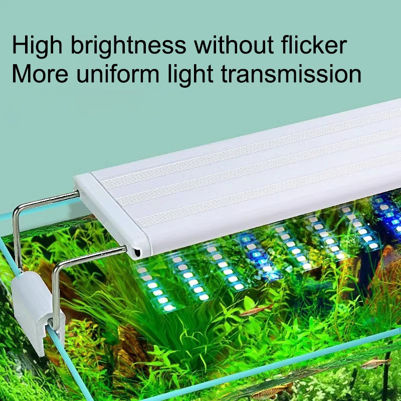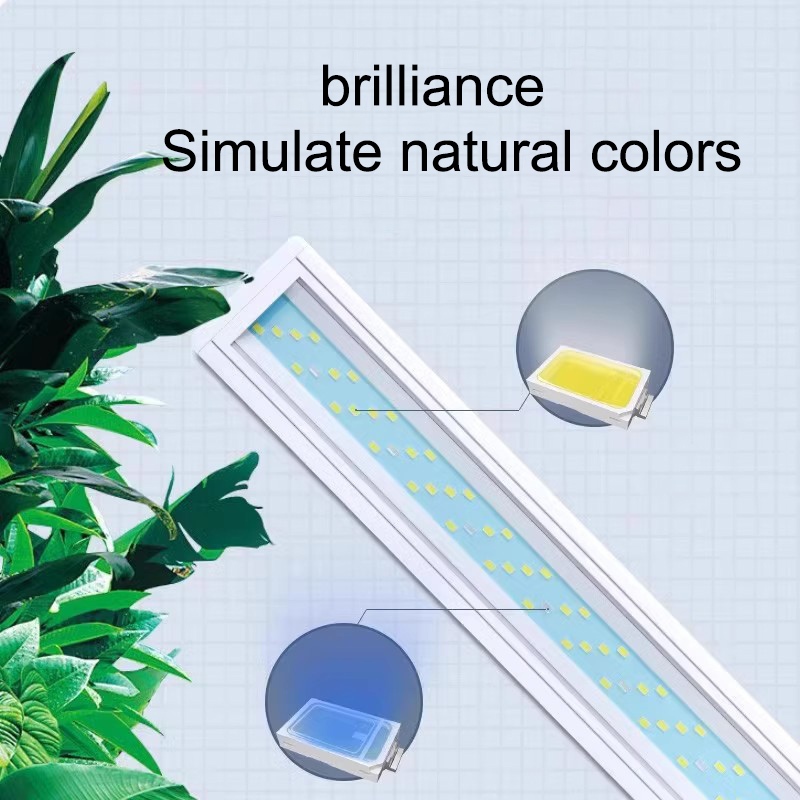 Aquarium LED Light Aquatic Plant Lamp 20-100cm Tricolor Blue+White Fish Tank Light 4 Row LED Beads