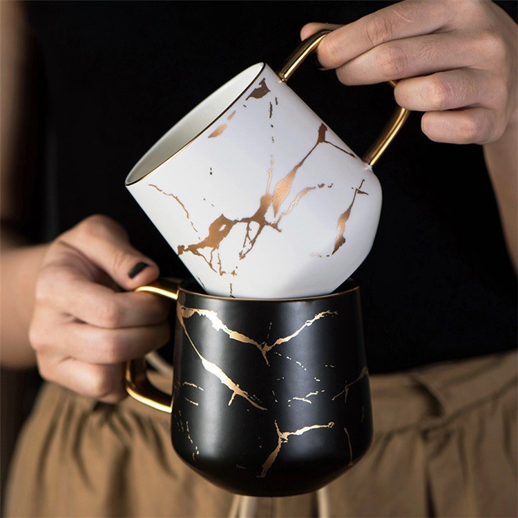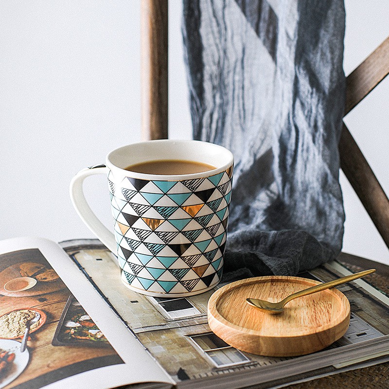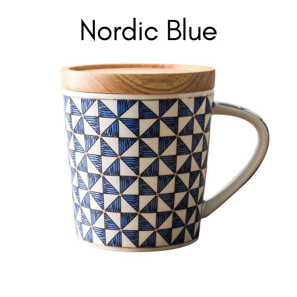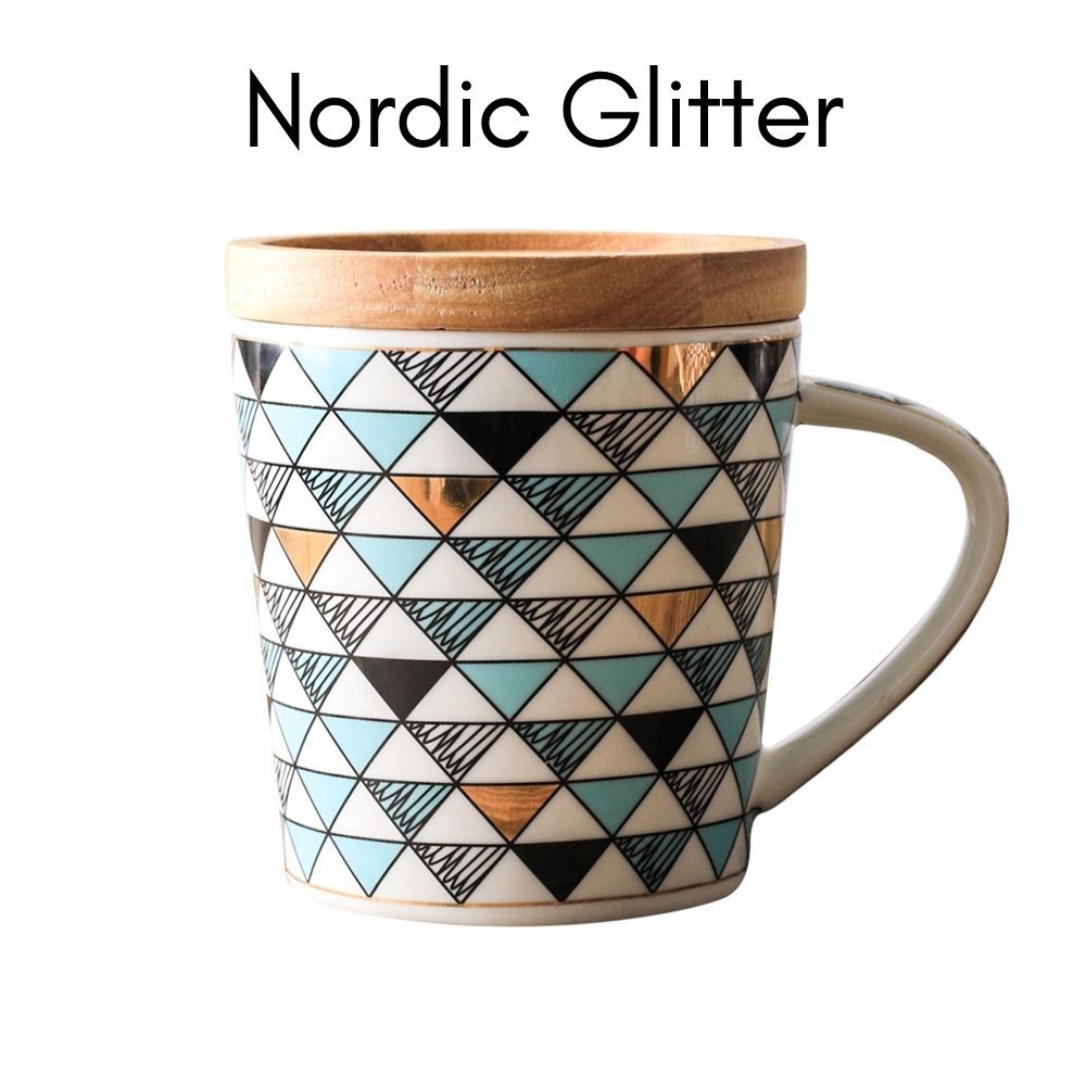 Marble/Diamond Ceramic Coffee Tea Mug/Cup with Wooden Lid (365ml) | Christmas Gift for Colleagues