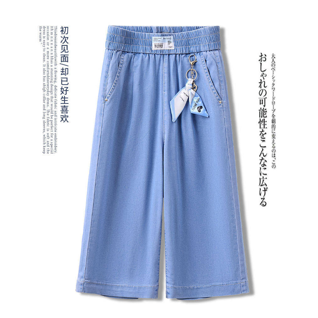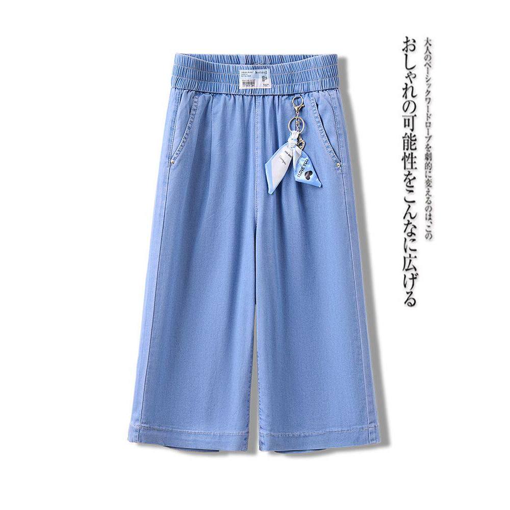 Cropped Pants Women Summer Thin Style 2025 High Waist Drape Light Color Tencel Jeans Wide Leg 7 Points Middle Pants