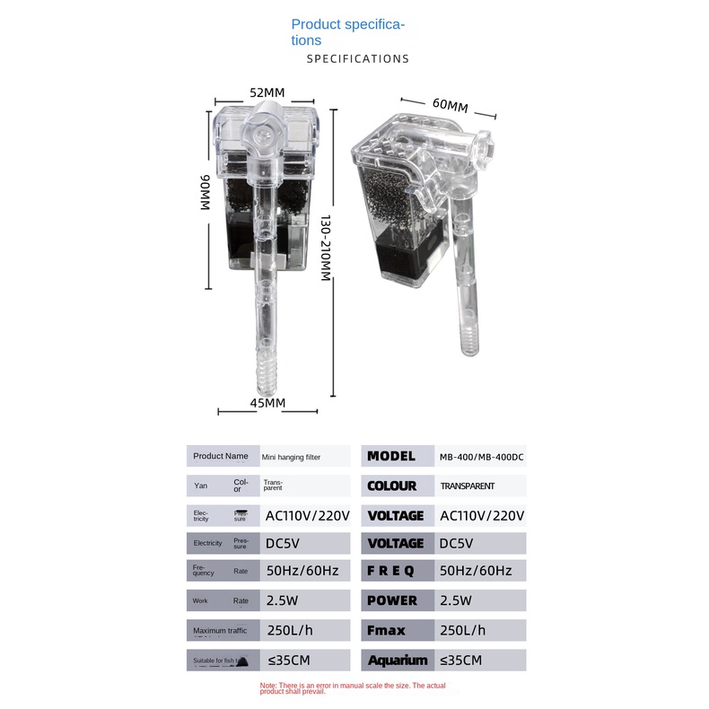 Aquarium filter for fish tank silent filter USB AC/DC interface filter pump 0-30cm tank